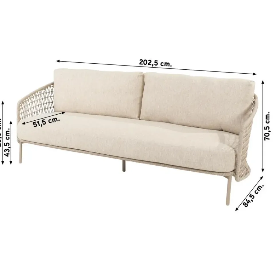 Een meesterwerk ontwerpen is niet gemakkelijk, toch heeft 4 Seasons Outdoor haar best gedaan met de Puccini serie. Het unieke rope patroon, de prachtige kleur ‘latte’ en natuurlijk een perfect zitcomfort. Deze relaxbank heeft plaats voor 3 personen, ook nog eens lekker ruim! Of je nu even alleen gaat genieten en languit gaat liggen of vrienden uitnodigt voor een borrelmiddag of avond. Met deze loungebank steel je zeker de show! Bestellen van deze Puccini 3-zits bank kan direct online!