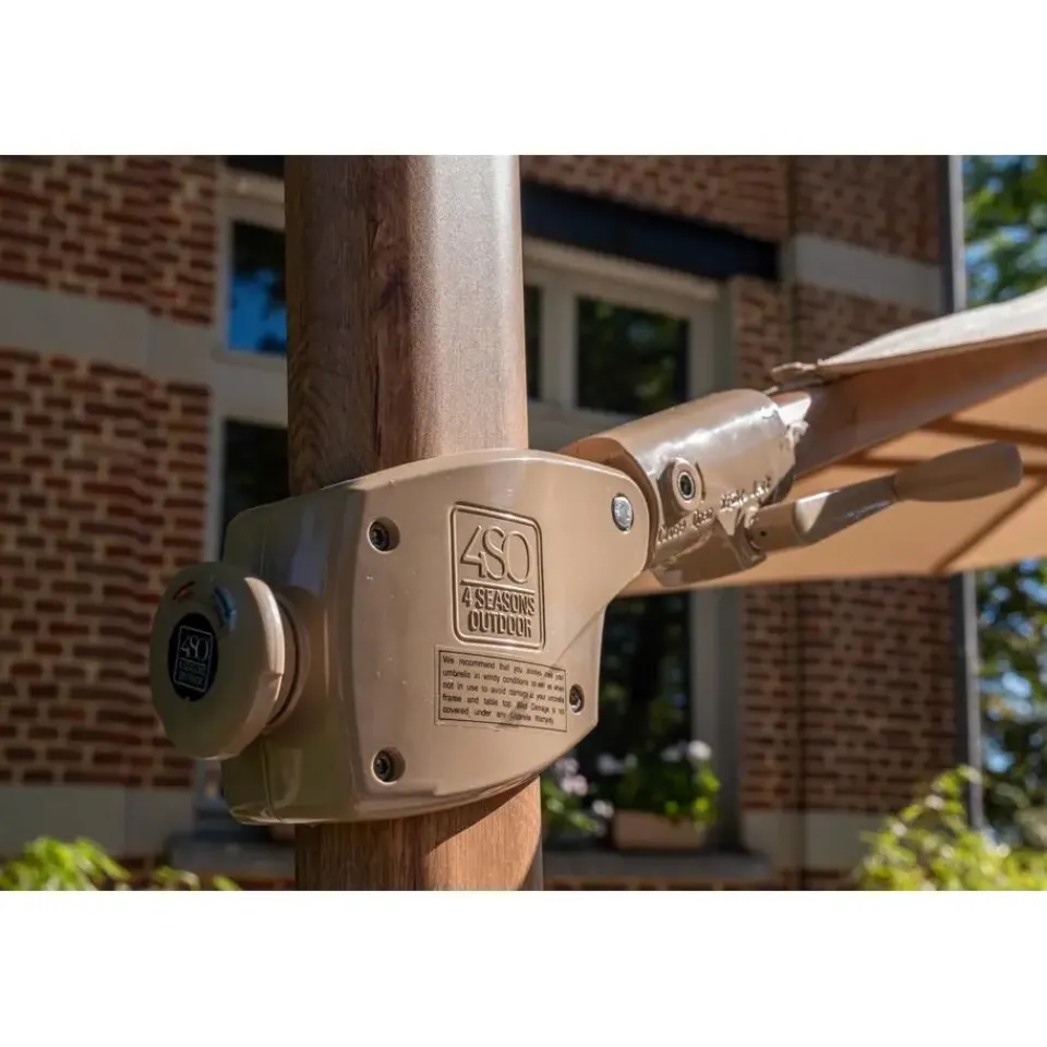 Ontdek de luxe van de 4 Seasons zweefparasol Siesta. Deze zweefparasol heeft een royale diameter van 350 cm en een elegante houtlook afwerking die moeiteloos in elke tuin past. Met deze Sand kleur en het hout, past deze parasol perfect in een Bohemian stijl tuin. Verander je terras in een schaduwrijke plek met deze stijlvolle parasol, waardoor je kunt genieten van ontspannen momenten buiten. Het doek van de 4 Seasons Siesta parasol is gemaakt van hoogwaardig Solefin materiaal, bekend om zijn buitengewone kleurvastheid en UV-bestendigheid. Hierdoor blijft je parasol er jarenlang als nieuw uitzien. Ervaar zelf het comfort en de stijl van de 4 Seasons Siesta zweefparasol en geniet van onvergetelijke buiten momenten, seizoen na seizoen. Bestellen kan direct online!