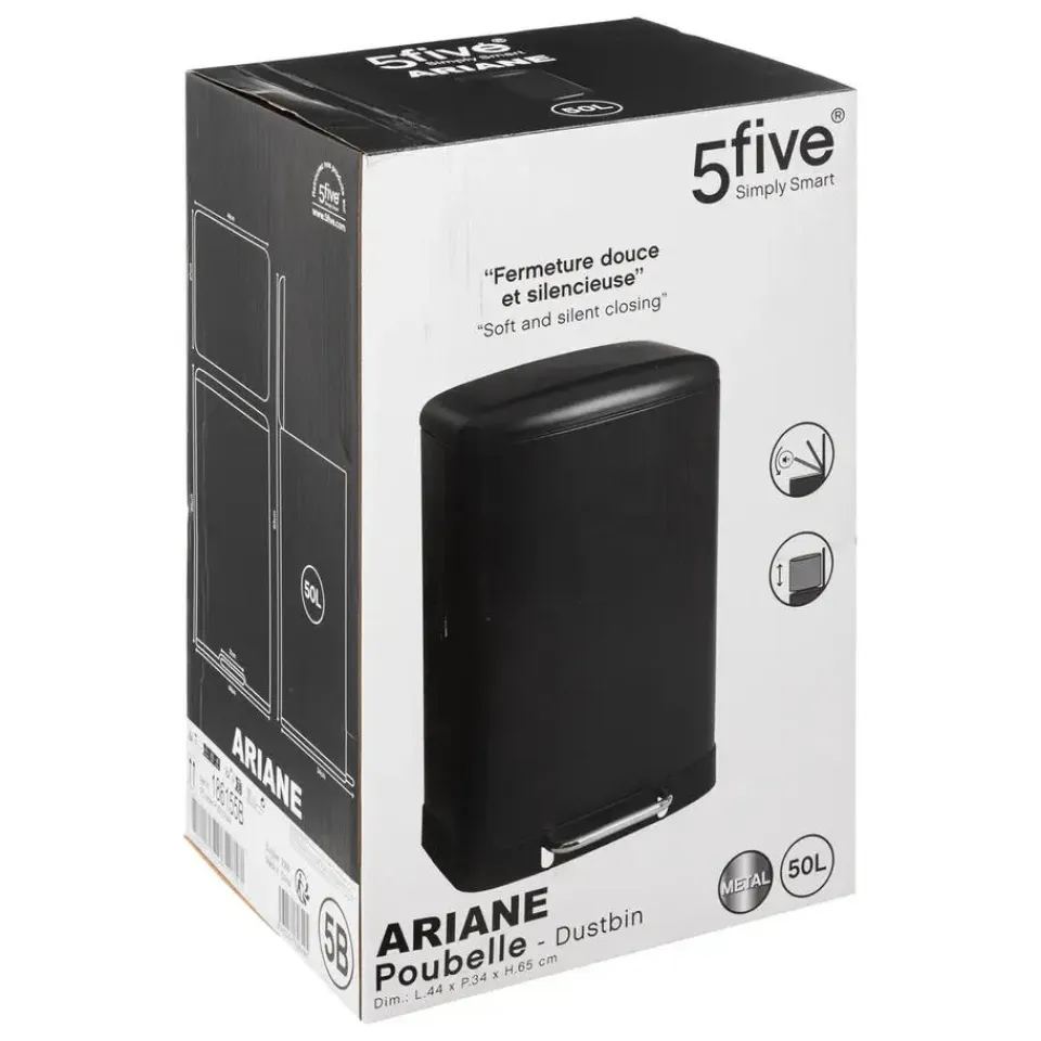 Prullenbak/pedaalemmer in een mooie kleur zwart, gemaakt van rvs metaal en een inhoud van 50 liter. Geschikt voor in de keuken en kantoor. Afmetingen: 44 x 37 x 66 cm. Sluiting is met het soft close principe. Model: Ariane. De pedaalemmer heeft een uitneembare, makkelijk te reinigen binnenbak die voorzien is van een handgreep. Gewicht: 4.1 kilo. Aanbevolen vuilniszak formaat is 50 liter.
