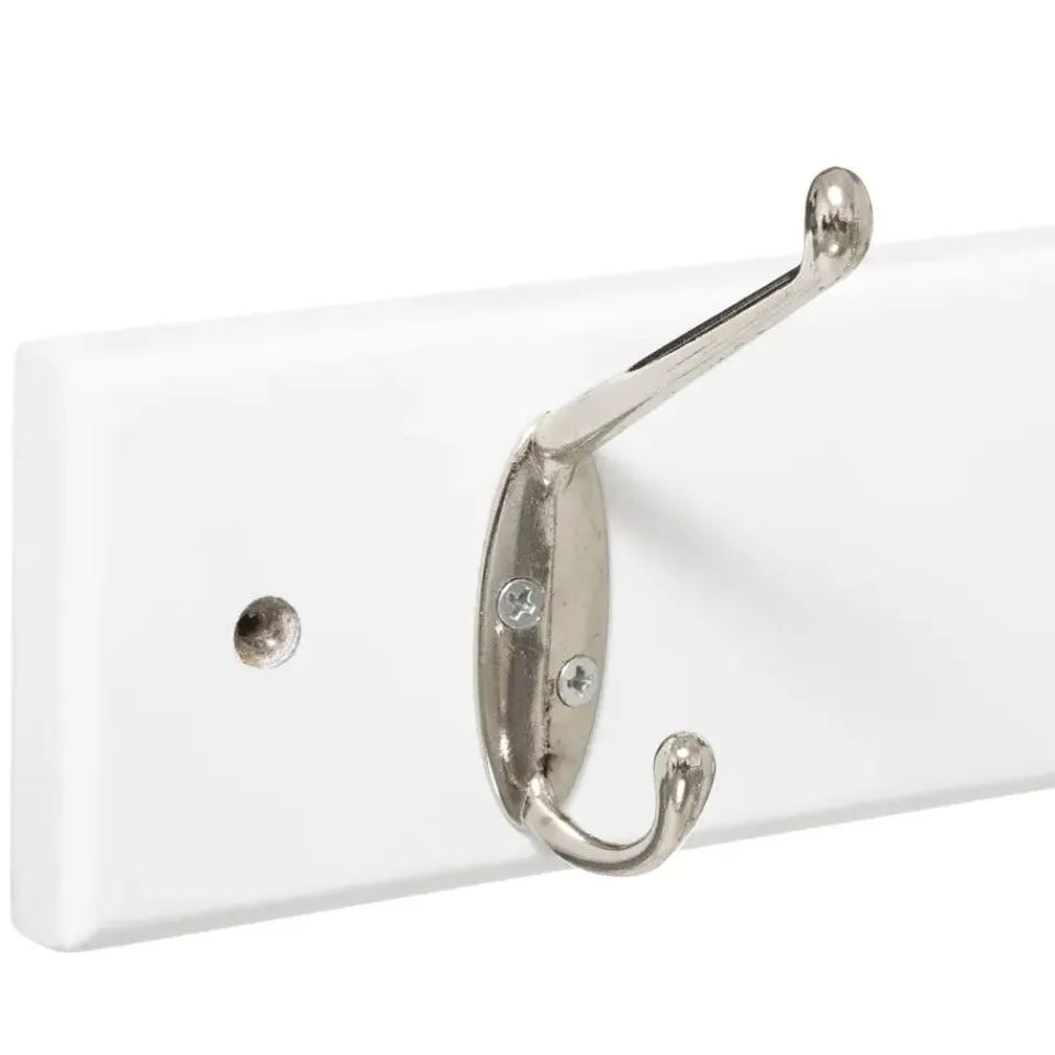 5Five kapstok rek voor aan de muur/wand in de kleur wit. Ideaal om je jassen en hoofddeksels aan op te hangen, dankzij de 6 ophanghaken/knoppen is er genoeg ruimte om diverse stukken op te hangen. Afmeting: 58 x 9 cm. Materiaal: MDF/ijzer. Wandkapstokken.
