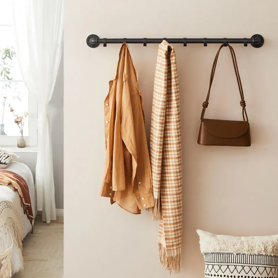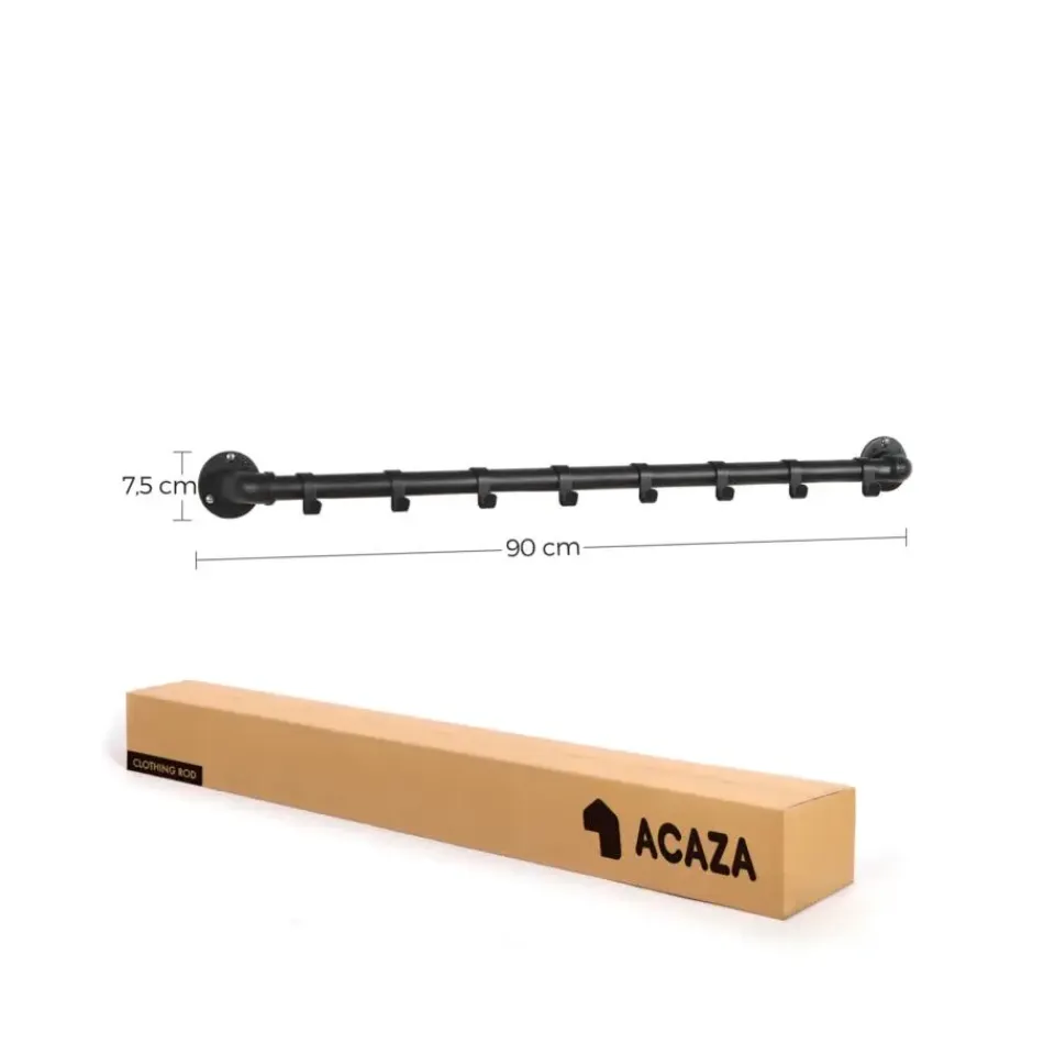 Voeg een vleugje industrieel design toe aan jouw kamer met deze lange zwarte kapstok van ACAZA! De wandkapstok heeft een roede met 8 haken waar je al jouw favoriete kledij aan kan hangen. De zwarte metalen buis is niet alleen praktisch, maar ook bijzonder aantrekkelijk qua design.