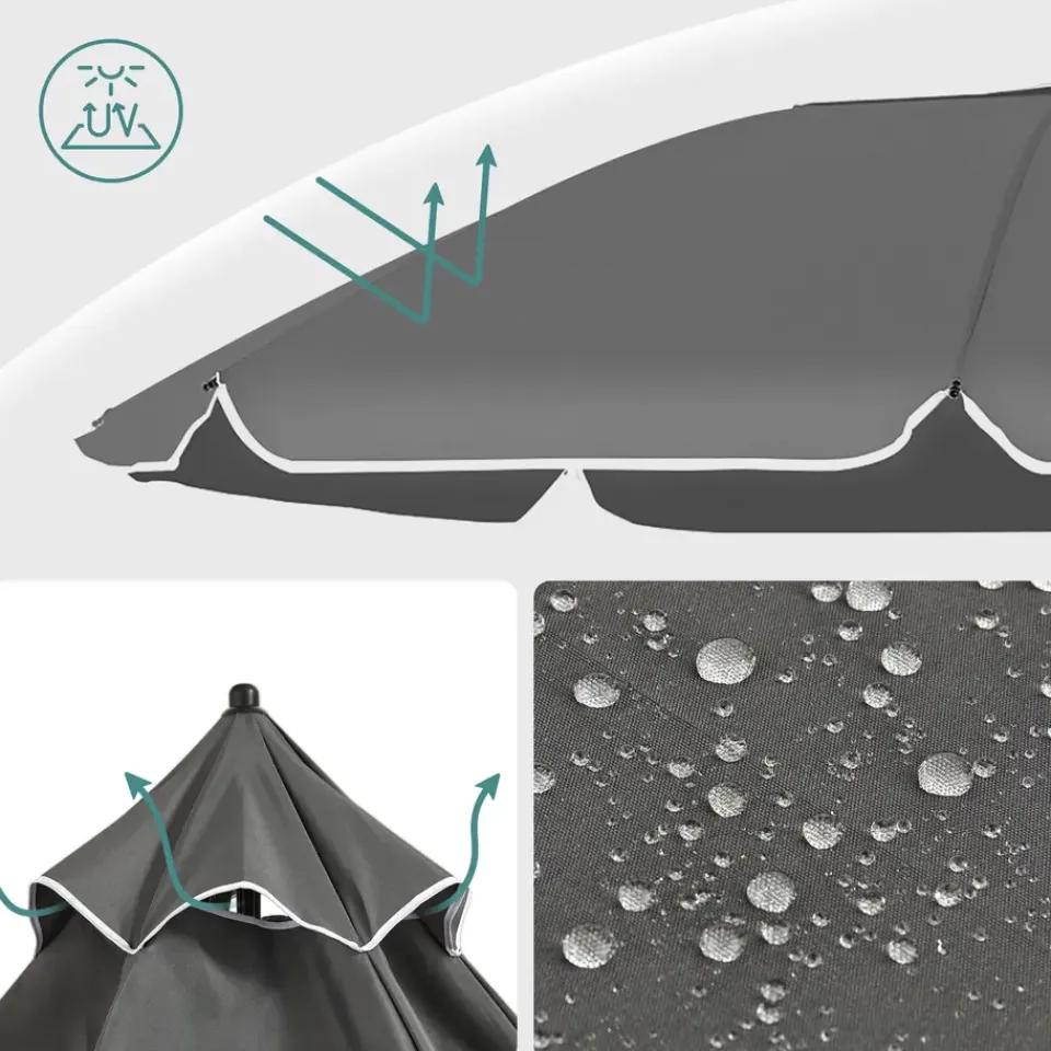 Deze parasol wordt geleverd met een draagtas, zodat je hem gemakkelijk kunt vervoeren en inpakken wanneer je hem nodig hebt. Met de knikfunctie kunt u de tuinparasol ook kantelen zodat deze altijd schaduwen werpt op de juiste plek