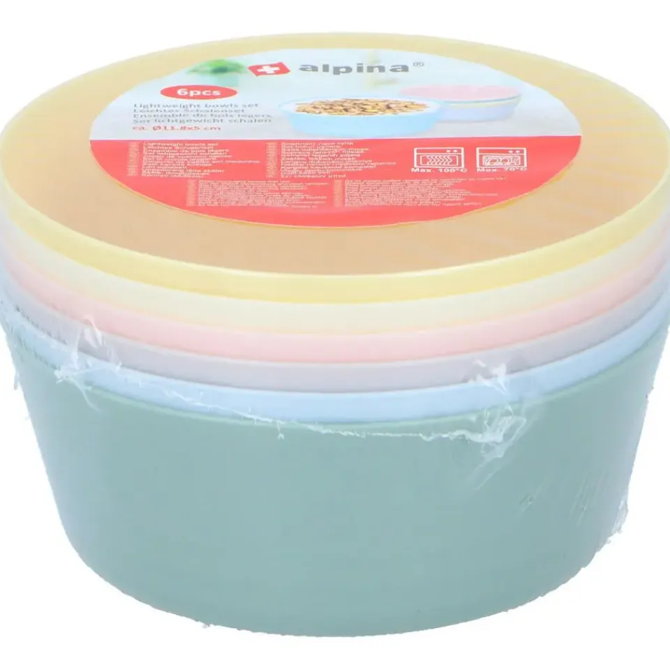 Set van 6x kunststof schaaltjes – D11,8 cm – diverse kleuren – herbruikbaar & vaatwasserbestendig
