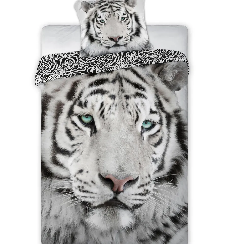 Animal Pictures Dekbedovertrek Tijger. Wat een cool dekbedovertrek is dit! Op de voorkant zie je een levensgrote tijger afbeelding, de achterzijde van het overtrek is een all over tijgerprint. Het overtrek is volledig in grijstinten. Dit dekbedovertrek is een prachtig cadeau voor iedere dieren fan, zo is het net alsof je in de jungle of dierentuin bent!