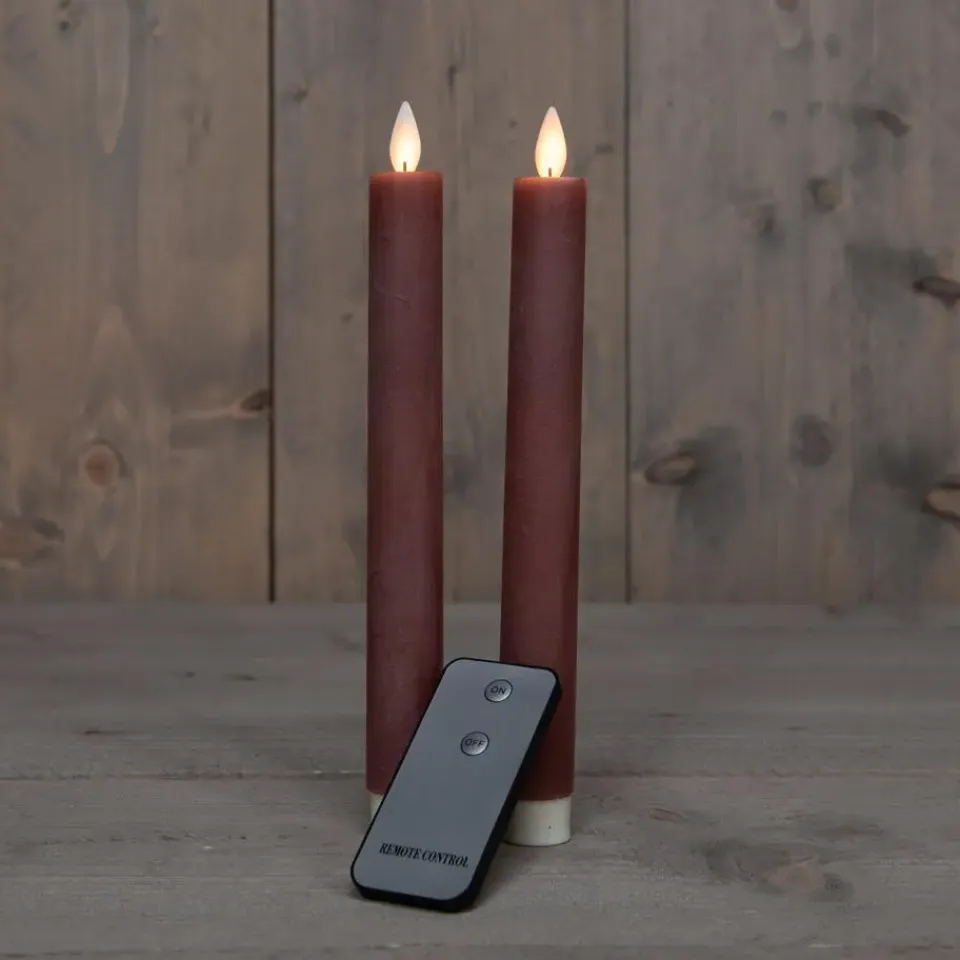 Prachtige LED dinerkaarsen in de kleur antiek roze. Deze set bestaat uit 2 stuks kaarsen, elk 23 cm hoog, die u gemakkelijk kunt bedienen met de bijgeleverde afstandsbediening. De kaarsen hebben een rustieke uitstraling door de bewegende vlam en warme gloed. Voeding per kaars: 2 AA batterijen (niet inbegrepen). Kleur licht: warm wit. – rustieke uitstraling- bewegende vlam- inclusief afstandsbediening- warm wit licht