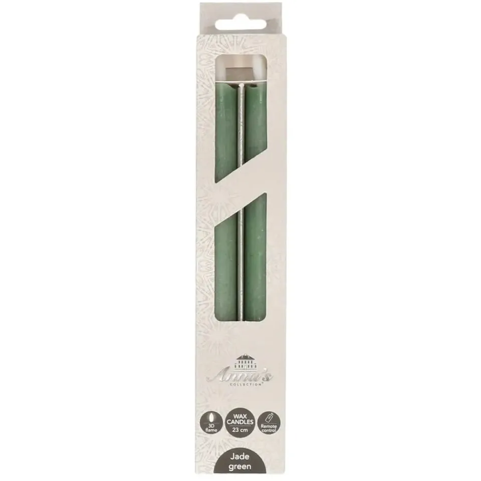 Anna’s Collection LED dinerkaarsen set van 2x stuks in de kleur jade groen. Breng sfeer en elegantie naar je eetkamer met deze prachtige LED kaarsen. Deze rustieke kaarsen in een stijlvolle jade groene kleur, zijn perfect voor het geven van een warme en uitnodigende ambiance bij elke gelegenheid.