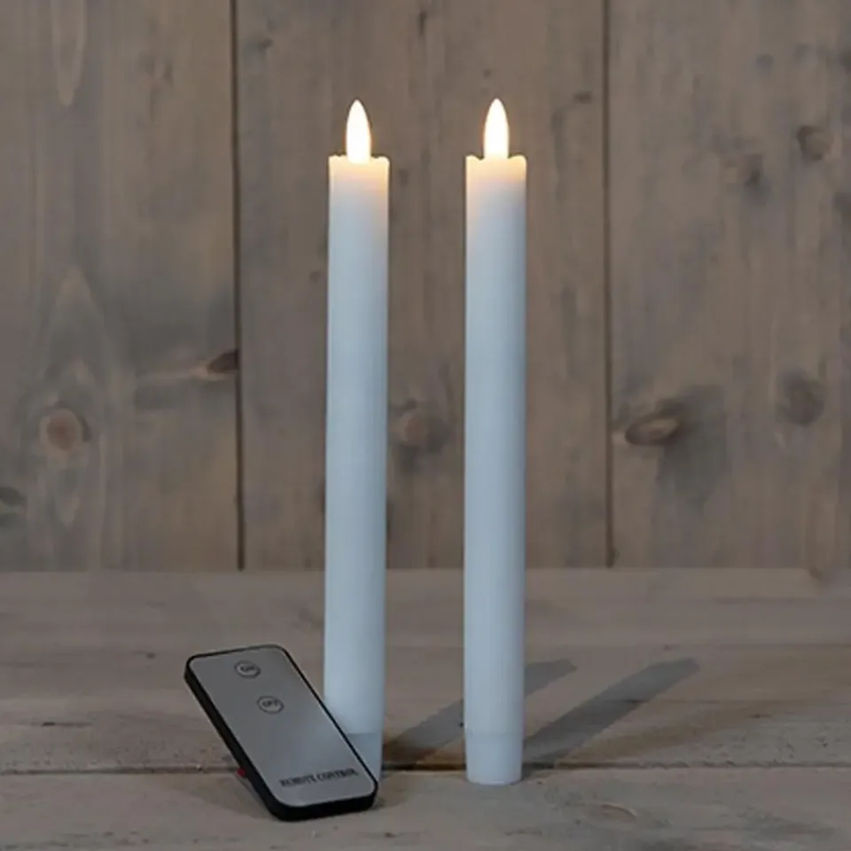 Anna’s Collection LED dinerkaarsen set van 2x stuks Led dinerkaarsen inclusief afstandsbediening 23 cm. Type kaars: druipkaarsen rustiek met bewegende vlam. Voeding per kaars: 2 AA batterijen (niet inbegrepen).