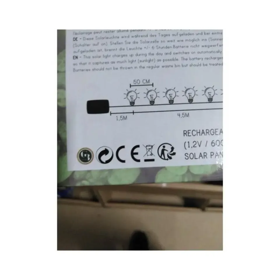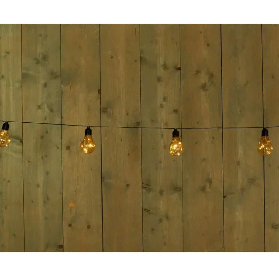 Solar tuinverlichting lichtsnoer. Breng sfeer in je tuin of op je feestlocatie met dit solar lichtsnoer van 4,5 meter. De 10 warm witte LED bollampjes zorgen voor gezellige verlichting, ideaal voor tuinfeesten, barbecues, of als permanente tuinversiering.