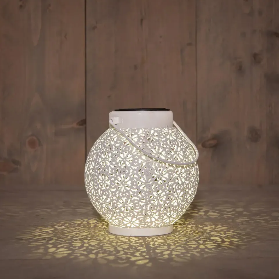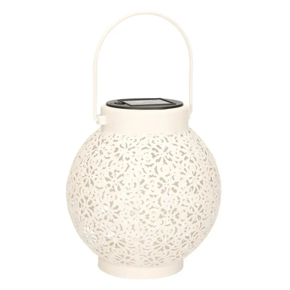 Maak je terras of balkon sfeervol met de ronde solar lantaarn met design. Geef de lantaarn een centraal plekje om zowel overdag als in de avond van het windlicht te genieten. Ook leuk om cadeau te geven aan vrienden en familie. De brandduur hangt af van de weersomstandigheden, 8 uur volle zon zorgt voor een maximaal aantal branduren. De tafellamp heeft warm wit licht.