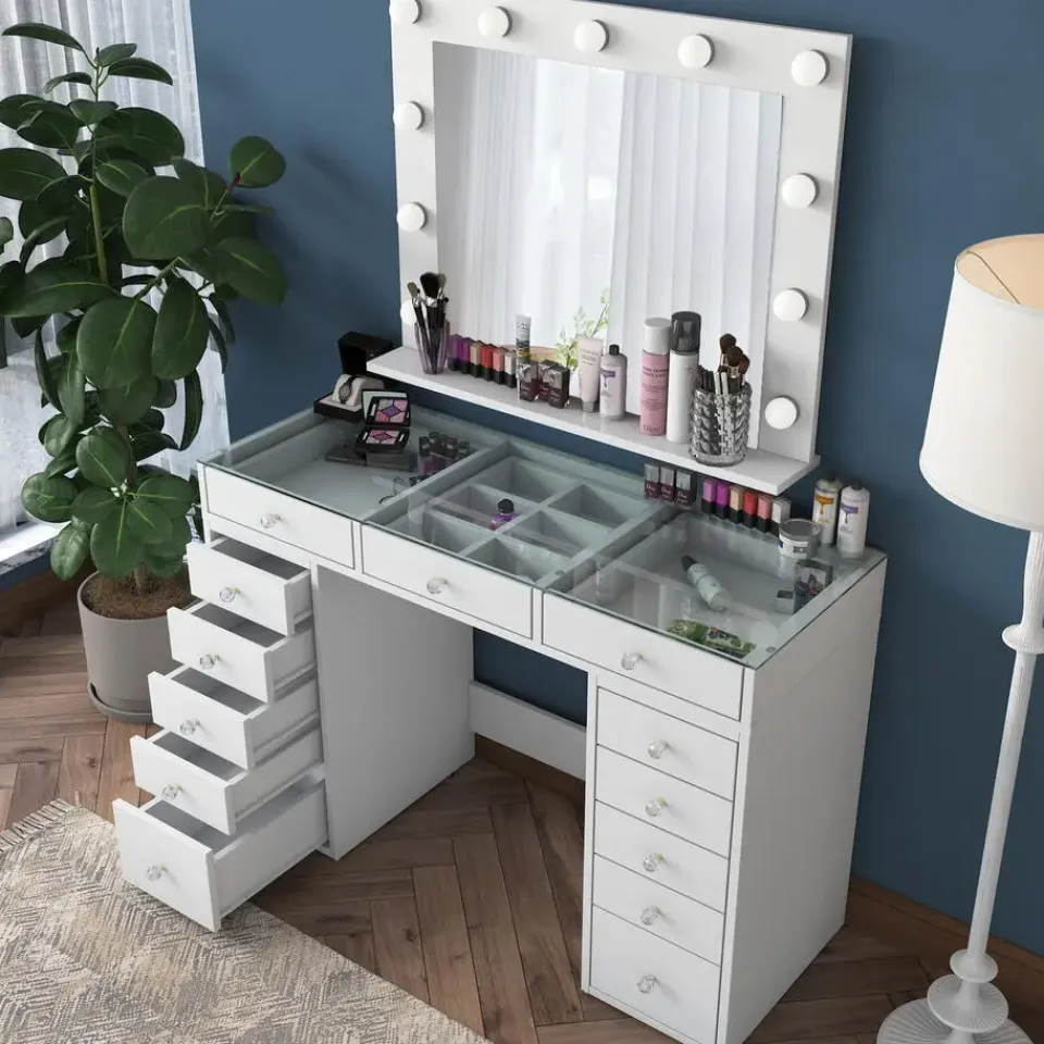 Revitaliseer je ochtendroutine en verwen jezelf met de luxe die je verdient. Bestel onze make-uptafel vandaag nog en ervaar het plezier van een mooi georganiseerde ruimte die je zelfvertrouwen en creativiteit geeft.