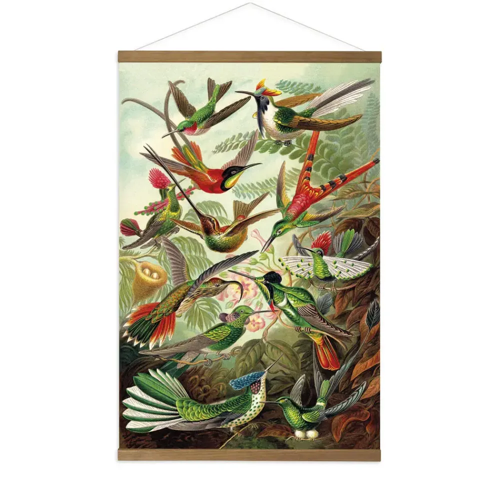 Deze linnen hangende poster Kolibries is geïnspireerd op de prachtige Japanse kakemono-stijl. Dit kleurrijke ontwerp brengt de levendigheid van een jungle recht naar jouw interieur. Met afmetingen van 80x60cm biedt deze poster een indrukwekkende aanvulling op elke ruimte.