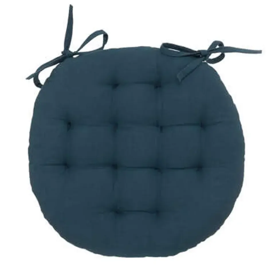 Atmosphera wicker tuinstoelkussen rond geschikt voor binnen en buiten gebruik. Kleur: donkerblauw. Afmeting: 38 x 6.5 cm Materiaal: 100% katoen. Niet wasbaar, afnemen met vochtige doek. Gewicht: 590 gram. Buiten/binnen kussens voor de stoelen van uw tuinstel of keukentafel. Diverse mooie luxe kleuren voor een topprijs. Met twee vastzet koordjes.