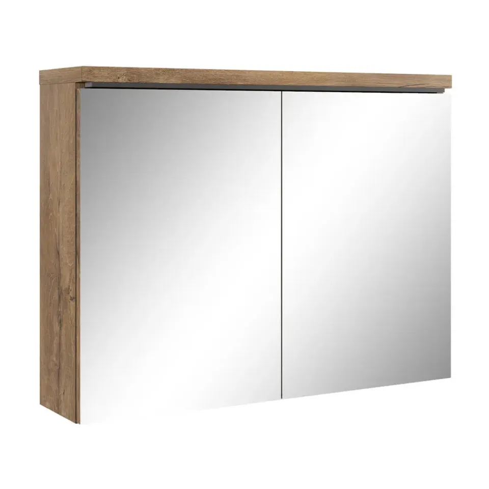 Spiegelkast Paso is een kast voor in de badkamer uitgevoerd met twee spiegeldeuren en veel bergruimte. De kast is gemaakt van hoge kwaliteit spaanplaat en vanwege zijn strakke afwerking ook makkelijk schoon te maken. De deuren van de kast zijn aan de buitenzijdes uitgevoerd met twee spiegels. De kast heeft aan de binnnekant geen spiegels. De spiegelkast is uitgevoerd in bruin eiken.