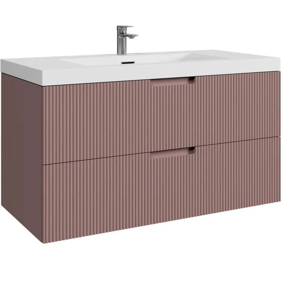 Badkamermeubel set Thermis inclusief onderkast en wastafel.De onderkast is uitgevoerd met twee lades met soft close sluiting.De wastafel is gemaakt van kunstmarmer, de wastafelkast is uitgevoerd in het roze.