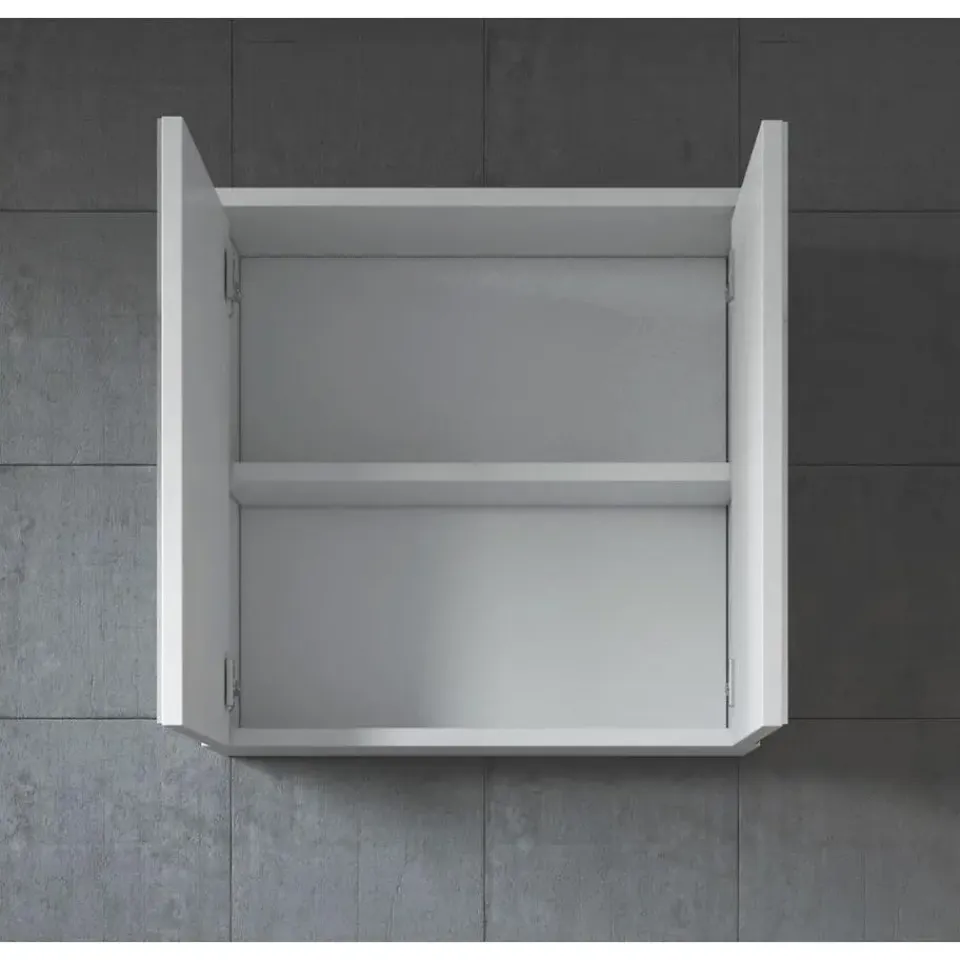 Spiegelkast Toledo is een kast voor in de badkamer uitgevoerd met twee spiegeldeuren en veel bergruimte. De kast is gemaakt van hoge kwaliteit spaanplaat en vanwege zijn strakke afwerking ook makkelijk schoon te maken. De deuren van de kast zijn aan de buitenzijdes uitgevoerd met twee spiegels. De kast heeft aan de binnnekant geen spiegels. De spiegelkast is uitgevoerd in wit.