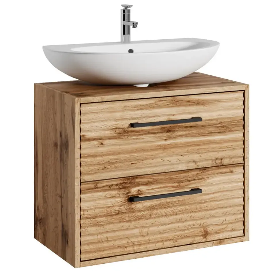 Wastafelkast Etna is een hangende badkamerkast voor onder een wastafel.Deze wastafelkast is bedoeld om iedere badkamer van extra bergruimte te voorzien en een moderne en luxe uitstraling te geven. De ombouw van de wastafelkast is gemaakt van hoge kwaliteit spaanplaat en de ladefronten zijn gemaakt van MDF.