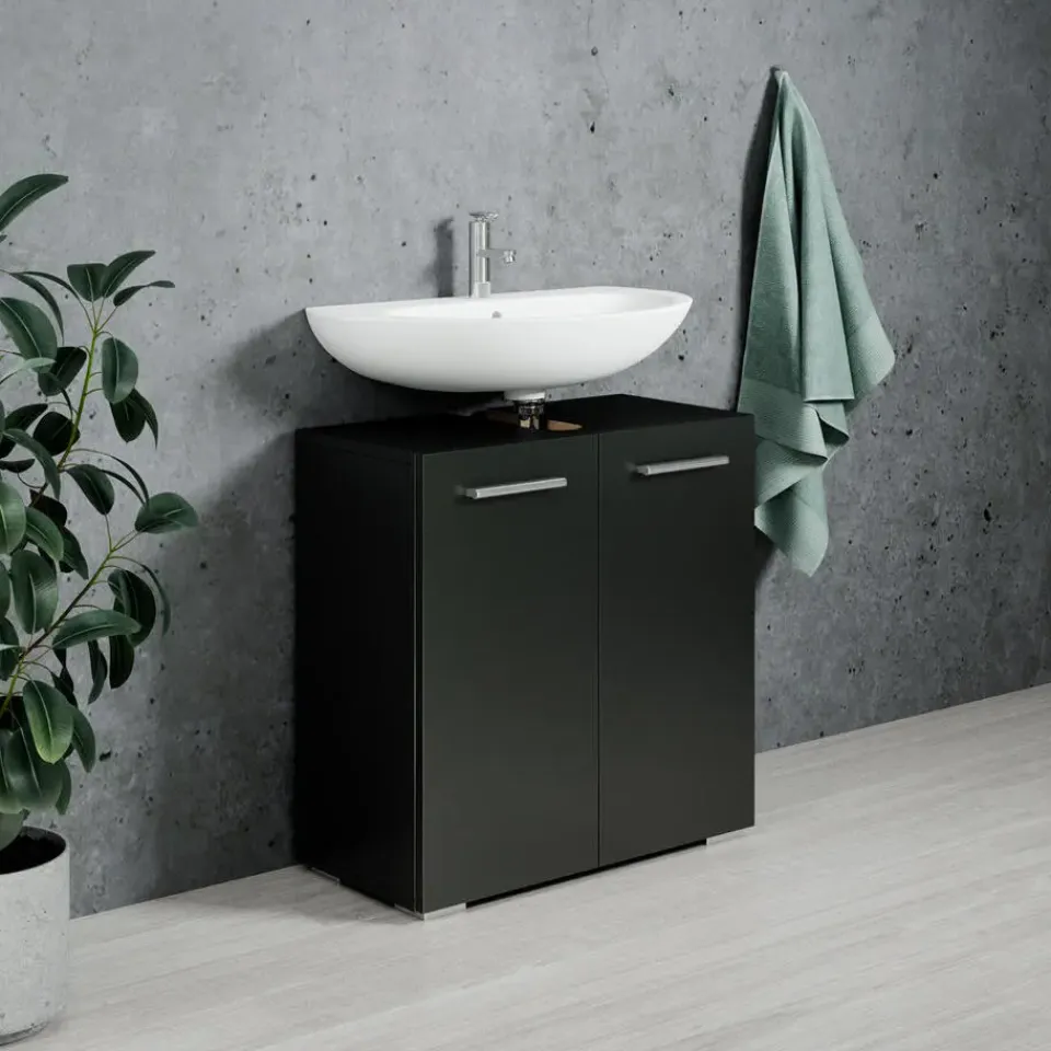 Wastafelkast Jupiter is een badkamerkast voor onder een hangende wastafel.Deze wastafelkast is bedoeld om iedere badkamer van extra bergruimte te voorzien en een moderne en luxe uitstraling te geven. De wastafelkast is gemaakt van hoge kwaliteit spaanplaat en vanwege zijn strakke afwerking ook makkelijk schoon te maken.