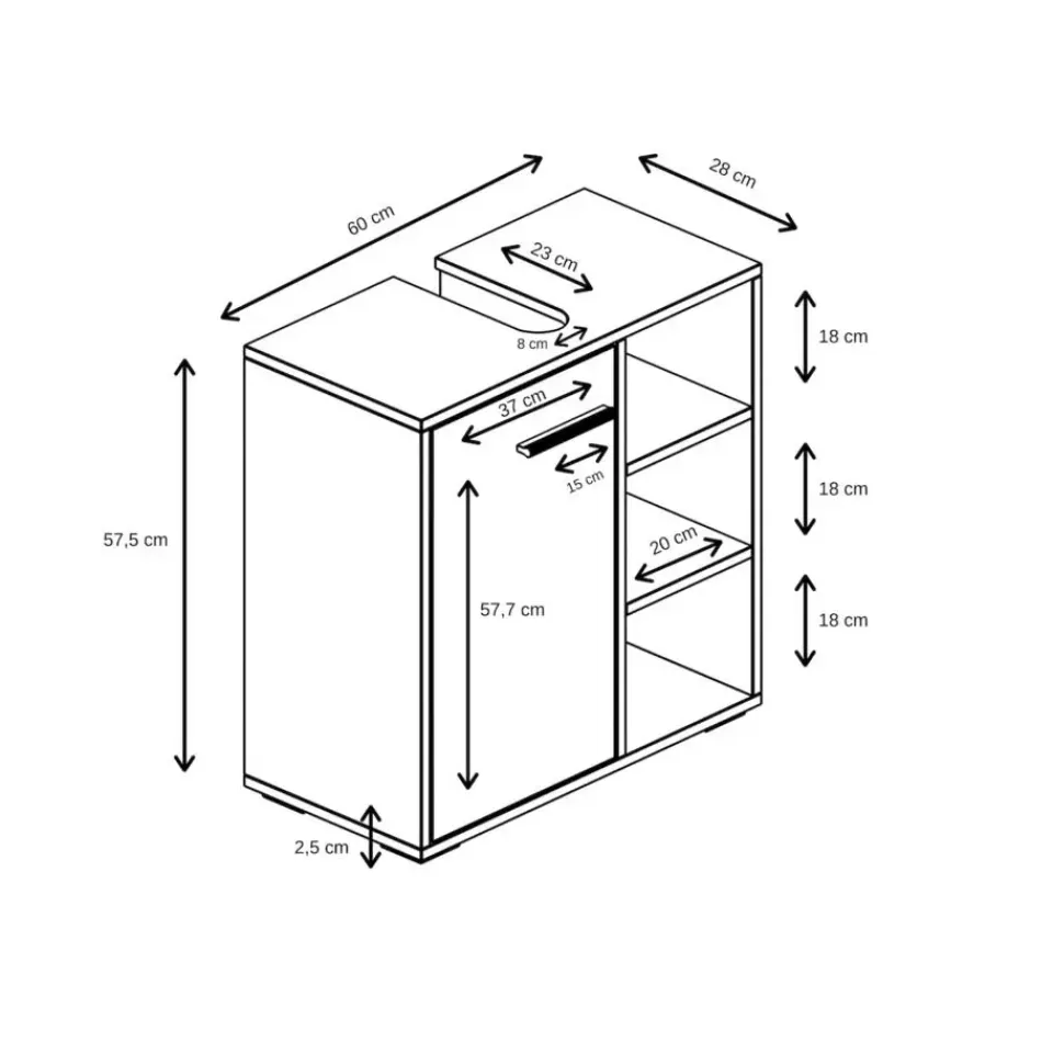 Wastafelkast Neptunus is een badkamerkast voor onder een hangende wastafel.Deze wastafelkast is bedoeld om iedere badkamer van extra bergruimte te voorzien en een moderne en luxe uitstraling te geven. De wastafelkast is gemaakt van hoge kwaliteit spaanplaat en vanwege zijn strakke afwerking ook makkelijk schoon te maken.