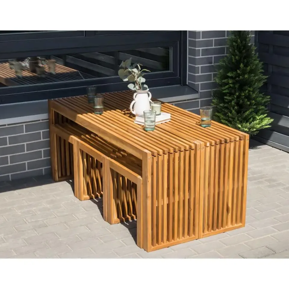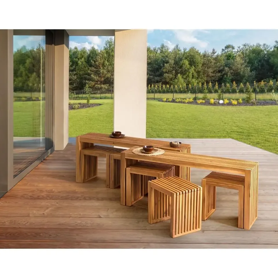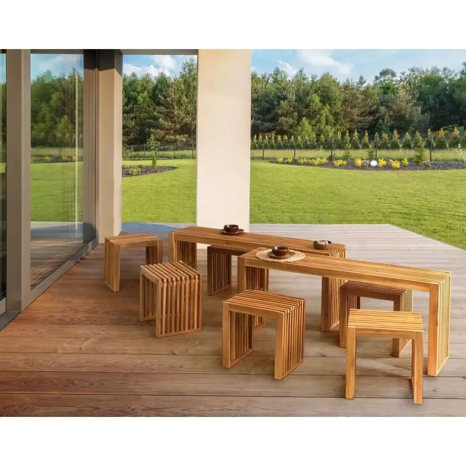 Belangrijkste eigenschappen: Stevig en comfortabel zitvlak, Modern terras- en tuinmeubilair, De natuurlijke houtnerven en kwasten maken elk stuk uniek, Hoogwaardig materiaal, Geschikt voor binnen- en buitengebruik