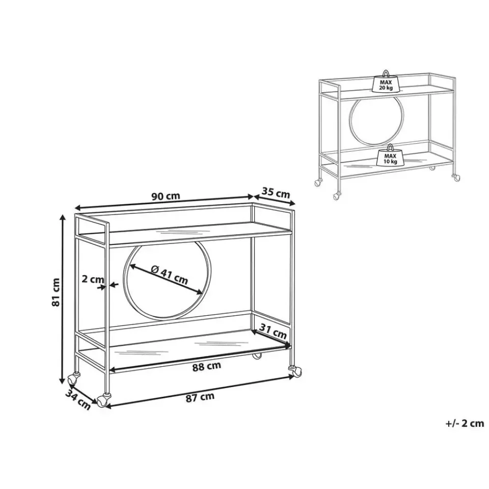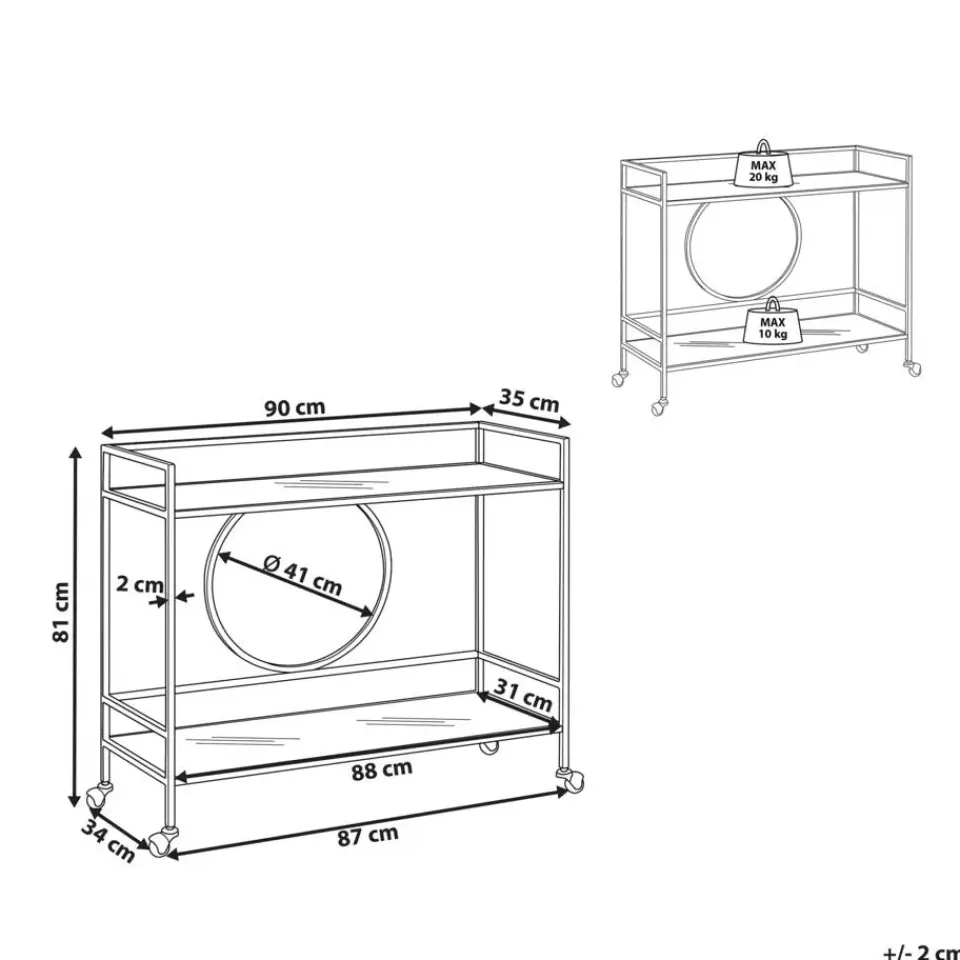 Belangrijkste eigenschappen: Zwenkwieltjes met rolbeveiliging, Open plank, Decoratief en functioneel, Elegant design, Hoogwaardig materiaal