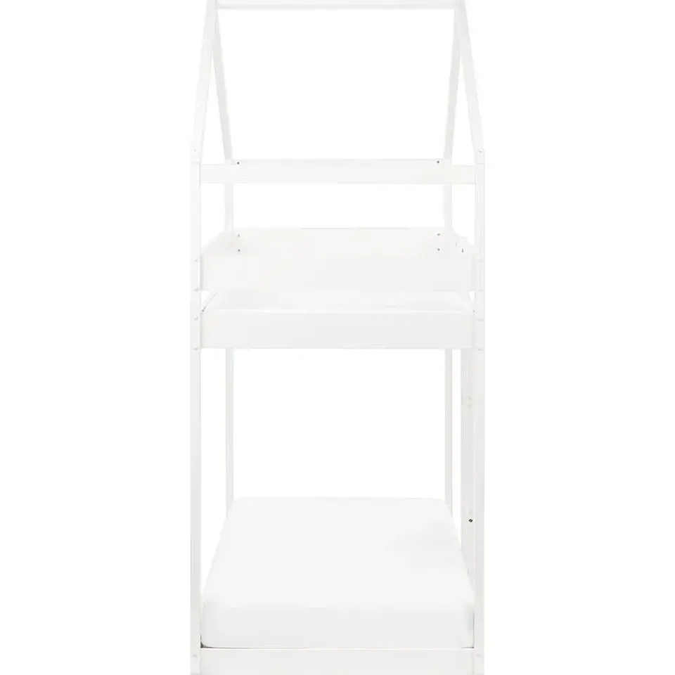 Extra informatie: Kinderen jonger dan 6 jaar mogen het bovenste bed niet gebruiken. Gebruik altijd een ladder bij het betreden en verlaten van het bovenste bed. Zorg ervoor dat de bovenste matras niet boven de lijn komt die op het uiteinde van het frame gemarkeerd is. Door het ontwerp van het stapelbed vereist het bovenste bed een matras met een laag profiel (maximaal 10 cm) voor veiligheid en comfort. Voor het onderste bed wordt een matrashoogte van ongeveer 16 cm aanbevolen. Hout is een natuurproduct. Kleur- en structuurverschillen, nerven, knoesten, barsten en andere natuurkenmerken zijn een bewijs van echtheid en geen fouten die recht geven op vervanging