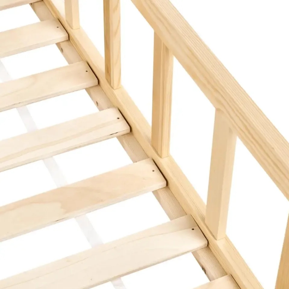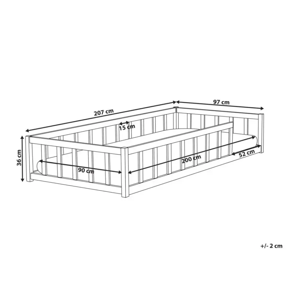 Extra informatie: Het product is geschikt voor een matras met een maximale hoogte van 16 cm. Dit product voldoet aan de EN 71-3 norm en is grondig getest om te bevestigen dat het geen schadelijke hoeveelheden giftige stoffen bevat, waardoor het veilig is voor dagelijks gebruik, vooral in omgevingen waar veiligheid een prioriteit is. Hout is een natuurproduct. Kleur- en structuurverschillen, nerven, knoesten, barsten en andere natuurkenmerken zijn een bewijs van echtheid en geen fouten die recht geven op vervanging