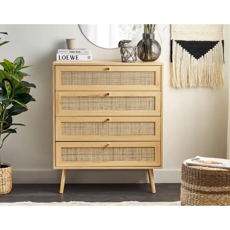 Belangrijkste eigenschappen: Hout-look finish voor een natuurlijke look, Past uitstekend in elk interieur, Robuust frame, Voldoende opbergruimte, Beschermdoppen voor oppervlaktebescherming