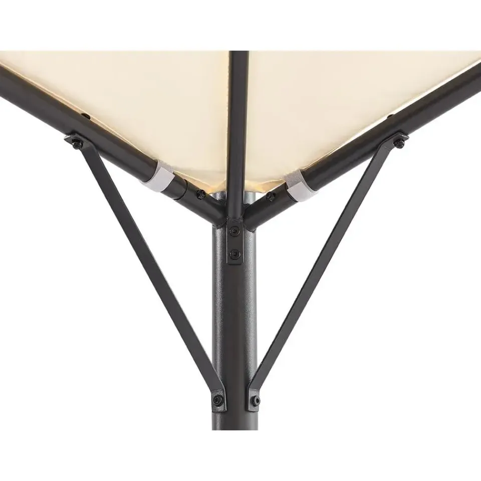 Extra informatie: Om veiligheidsredenen moet het paviljoen aan de grond worden vastgezet. De set bevat metalen haringen om het stuk op het gazon te bevestigen, maar het bevestigingsmateriaal voor andere oppervlakken is niet inbegrepen.