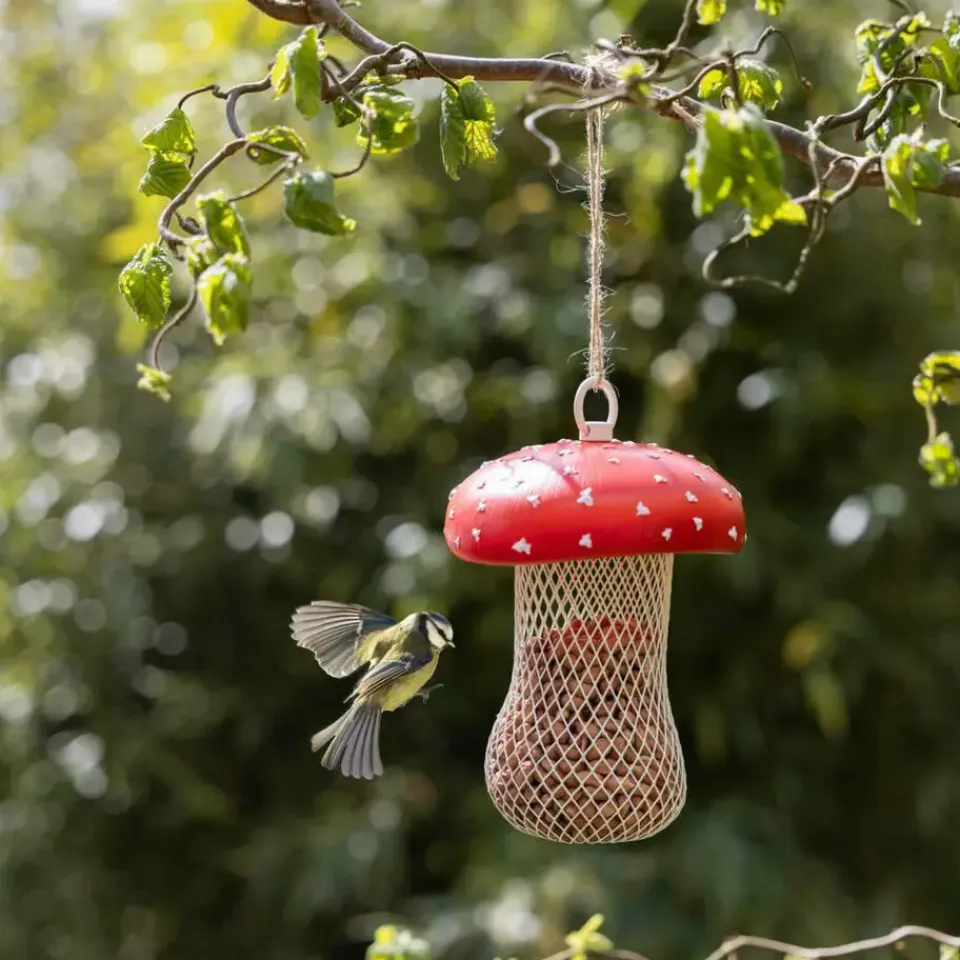 De Best for Birds Notensilo van de Fungi serie is een robuuste en stijlvolle voederplek voor tuinvogels in het thema van paddenstoelen en herfst in de vorm van een vliegenzwam, gemaakt van PVC/ijzer. Met een afmeting van 13 x 18 cm biedt deze hangende cilinder voldoende ruimte voor een gevarieerd aanbod van noten. De voedersilo is bestand tegen diverse weersomstandigheden en eenvoudig op te hangen in de tuin of op het balkon. Het handige, afsluitbare deksel houdt het voer droog en vers, terwijl de openingen zorgen voor gemakkelijke toegang voor vogels. Ideaal om het hele jaar door verschillende vogelsoorten aan te trekken!