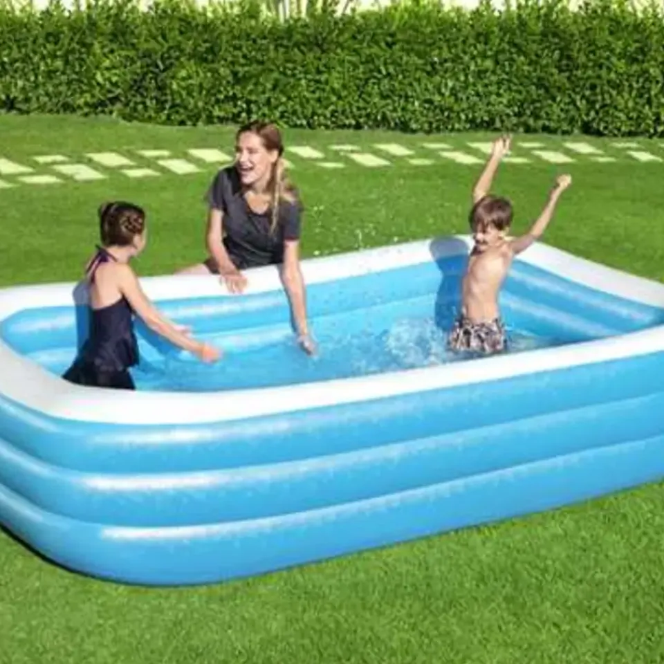Waarom veel geld uitgeven aan een vakantie, als je heerlijk kunt genieten in je eigen achtertuin? Dit innovatieve Bestway opblaasbare zwembad is perfect voor jou en je kleintjes om in de zomer zwemplezier te beleven! Dit opblaasbare zwembad is gemaakt van sterk en duurzaam vinyl waardoor het stevig en duurzaam is. Je kan het zwembadwater afvoeren dankzij het eenvoudig te gebruiken afvoerventiel. Het zwembad wordt geleverd met een robuuste reparatiepatch. Het opblaasbare, bovengrondse zwembad is geschikt voor kinderen vanaf 6 jaar oud.
