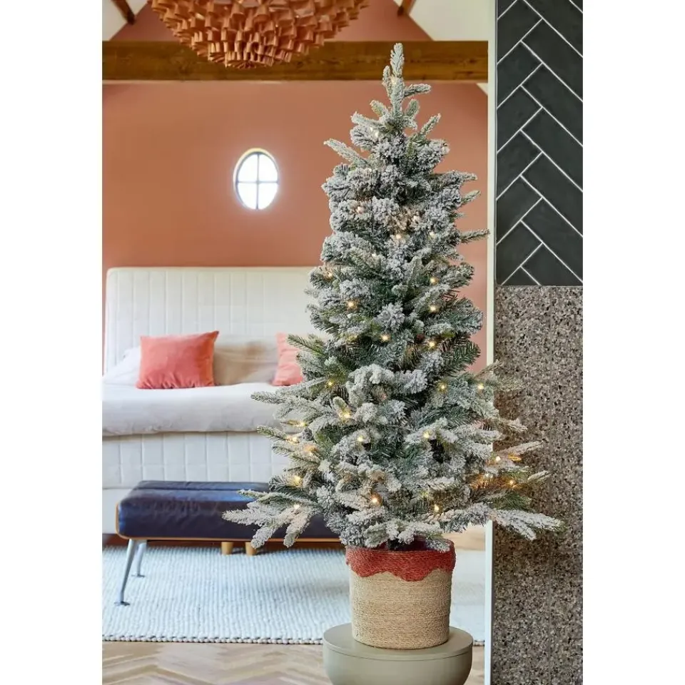 De Grimshaw kunstkerstboom van Black Box Trees is perfect voor wie op zoek is naar een compacte, maar sfeervolle kerstboom. Met zijn besneeuwde takken, warme verlichting en natuurlijke uitstraling brengt hij direct een winterse sfeer in huis.