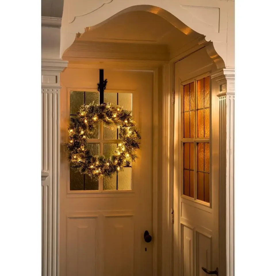 Met de Vandans kunstkrans uit de collectie van Black Box Trees haal je op een gezellige manier de winter in huis. De naaldjes zijn afgewerkt met een wit laagje kunstsneeuw en is leuk gedecoreerd met dennenappels. In de krans zitten al 30 energiezuinige LED lampjes verwerkt die een warm wit licht uitstralen. De verlichting werkt op 3 AA batterijen. De harde dennennaalden zijn zeer stevig, waardoor de takken mooi in model blijven. De binnenste takken zijn voorzien van zachte PVC naaldjes die de krans mooi opvullen. Versier hem eventueel nog met wat decoraties en hang hem op! Leuk voor aan een deur, of leg hem neer als kerststukje. De Vandans krans is verkrijgbaar in diverse maten, deze heeft een diameter van 60 cm. Wordt geleverd met 2 jaar garantie op zowel de krans als de verlichting.