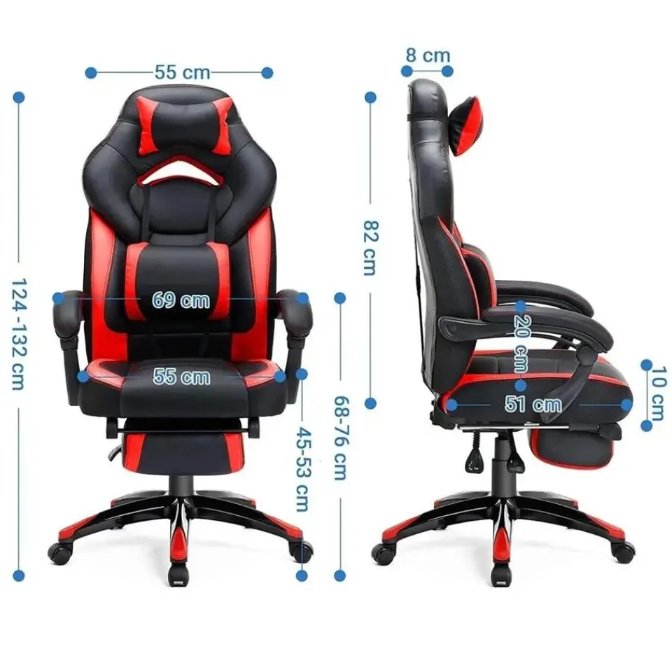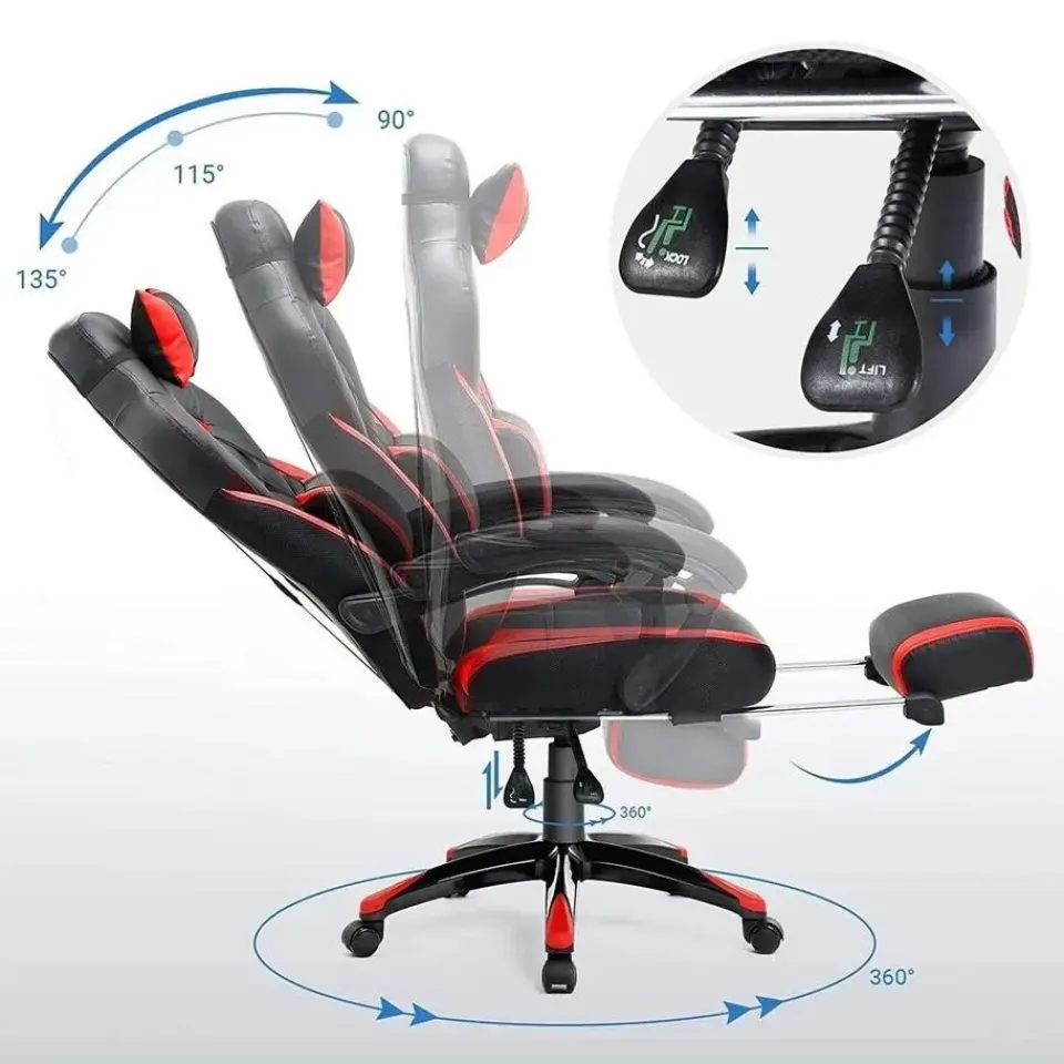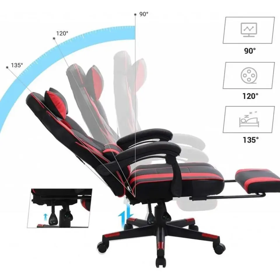 De gamingstoel is uitgerust met een uittrekbare voetsteun die verborgen is onder de stoel. Dit biedt extra comfort en verbetert de bloedcirculatie in je benen. De ergonomisch gevormde zitting en de rugleuning kunnen worden versteld, net als in een autostoel, voor maximaal comfort.