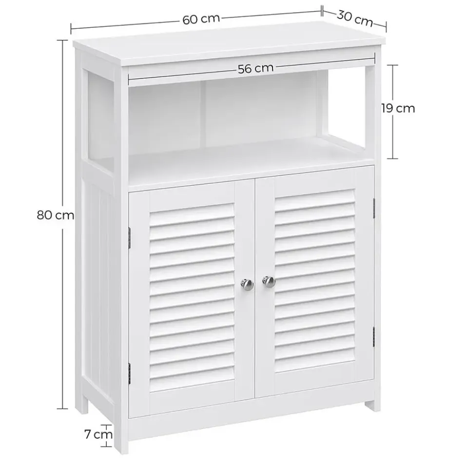 Bobbel Home – Witte Badkamerkast – Inclusief 2 Lamellendeuren – Landelijk – MDF Hot
