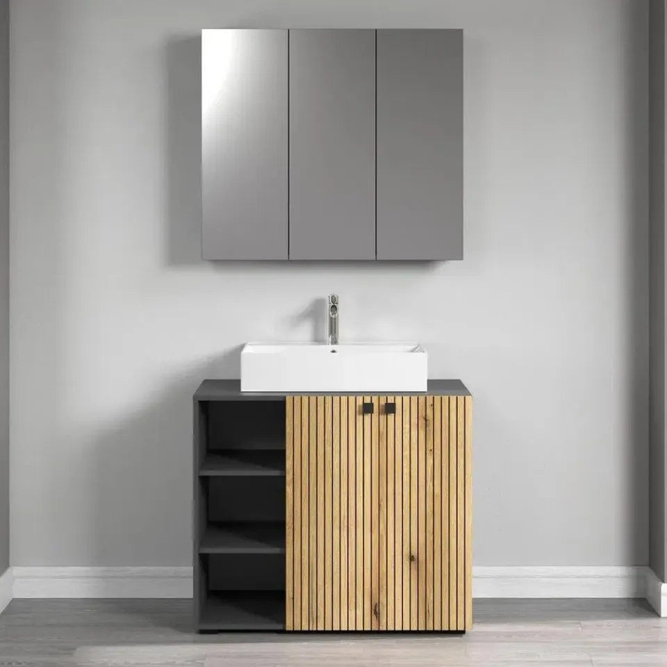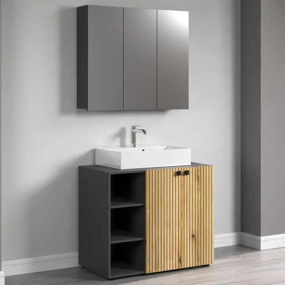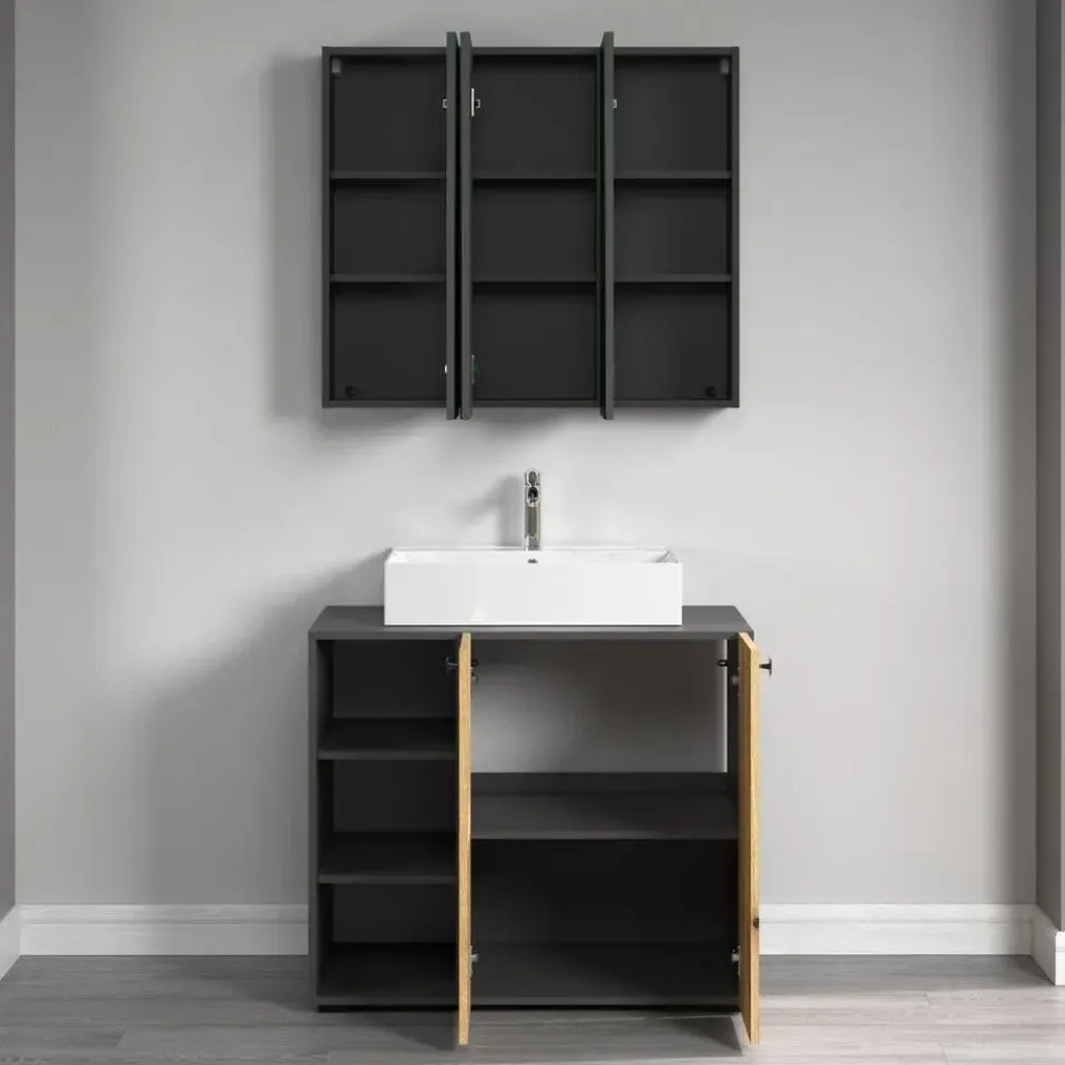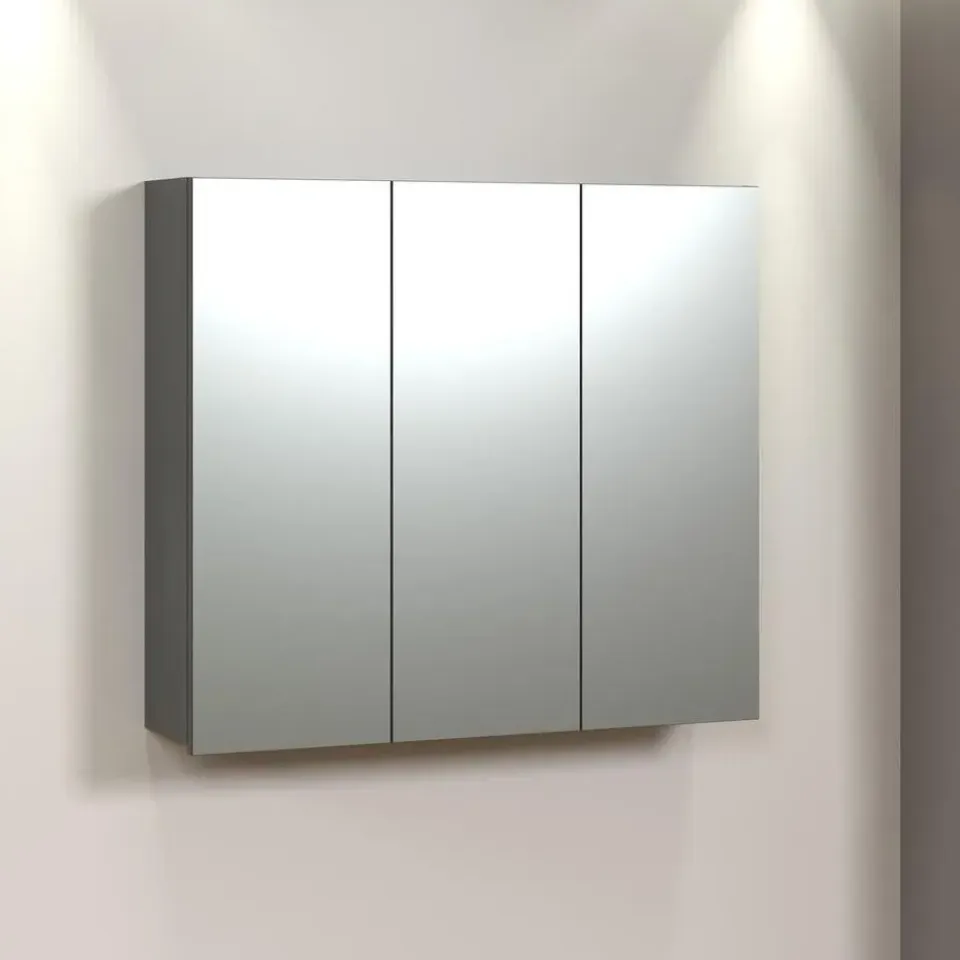 - Großer Badezimmerschrank mit Spiegel, 3 Spiegeltüren, mit 6 Einlegeböden im Inneren.