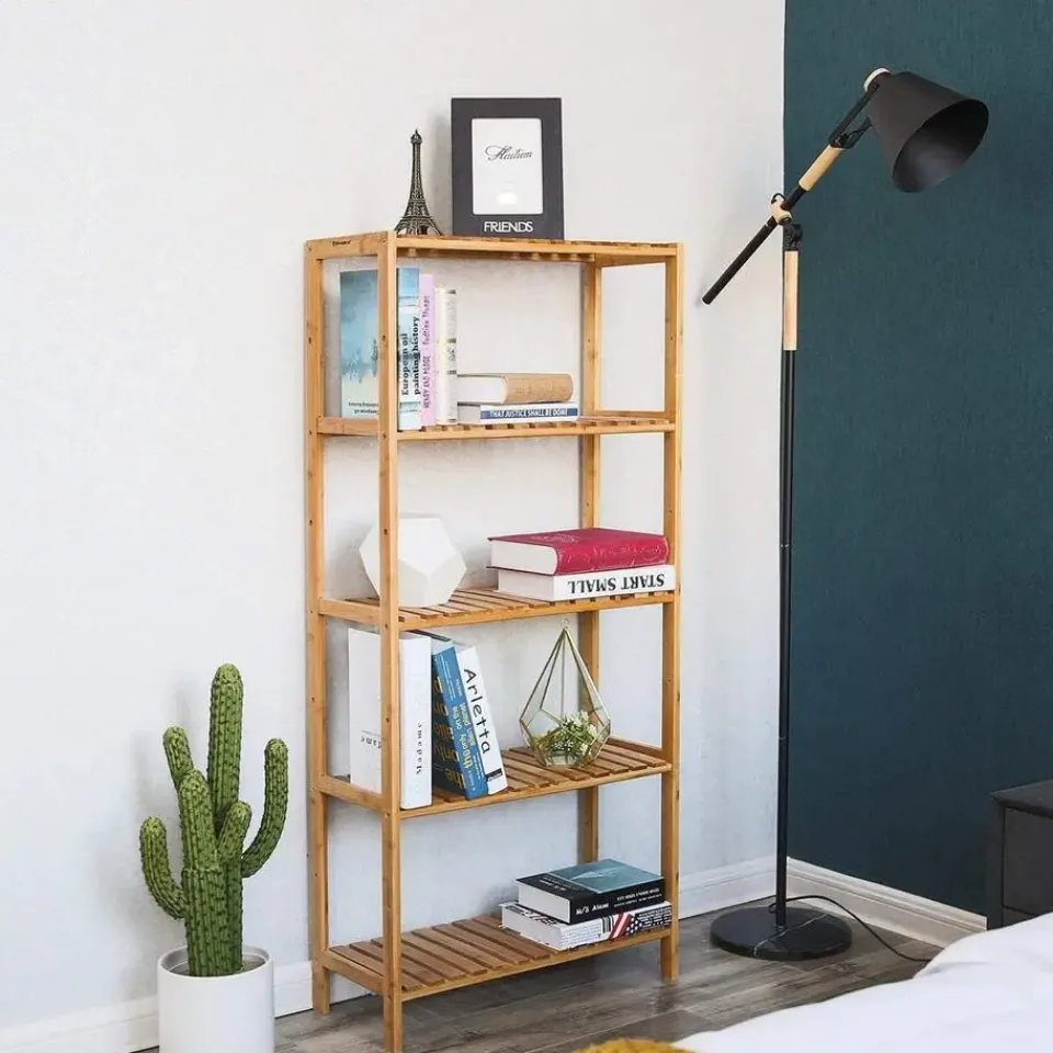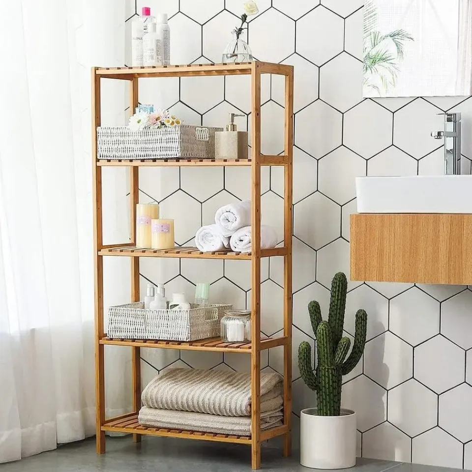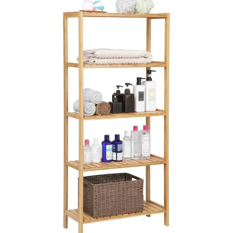 Profiteer van extra opbergruimte in je badkamer met deze Bamboe 5-Niveauschappen met verstelbare hoogtes – L60 cm! Plaats er al je geliefde items in, ongeacht of ze groot of klein zijn, dankzij de 5 planken die op 9 verschillende hoogtes kunnen worden geplaatst. Productkenmerken: Kleur: Natuurlijk Hoofdmateriaal: Bamboe Afwerking: Mat 5 schappen Productafmetingen: Lengte 60 cm x Breedte 26 cm x Hoogte 130 cm – Nettogewicht: 5,76 kg Verpakkingsafmetingen: Lengte 133,5 cm x Hoogte 29 cm x Breedte 9 cm – Brutogewicht: 6,6 kg