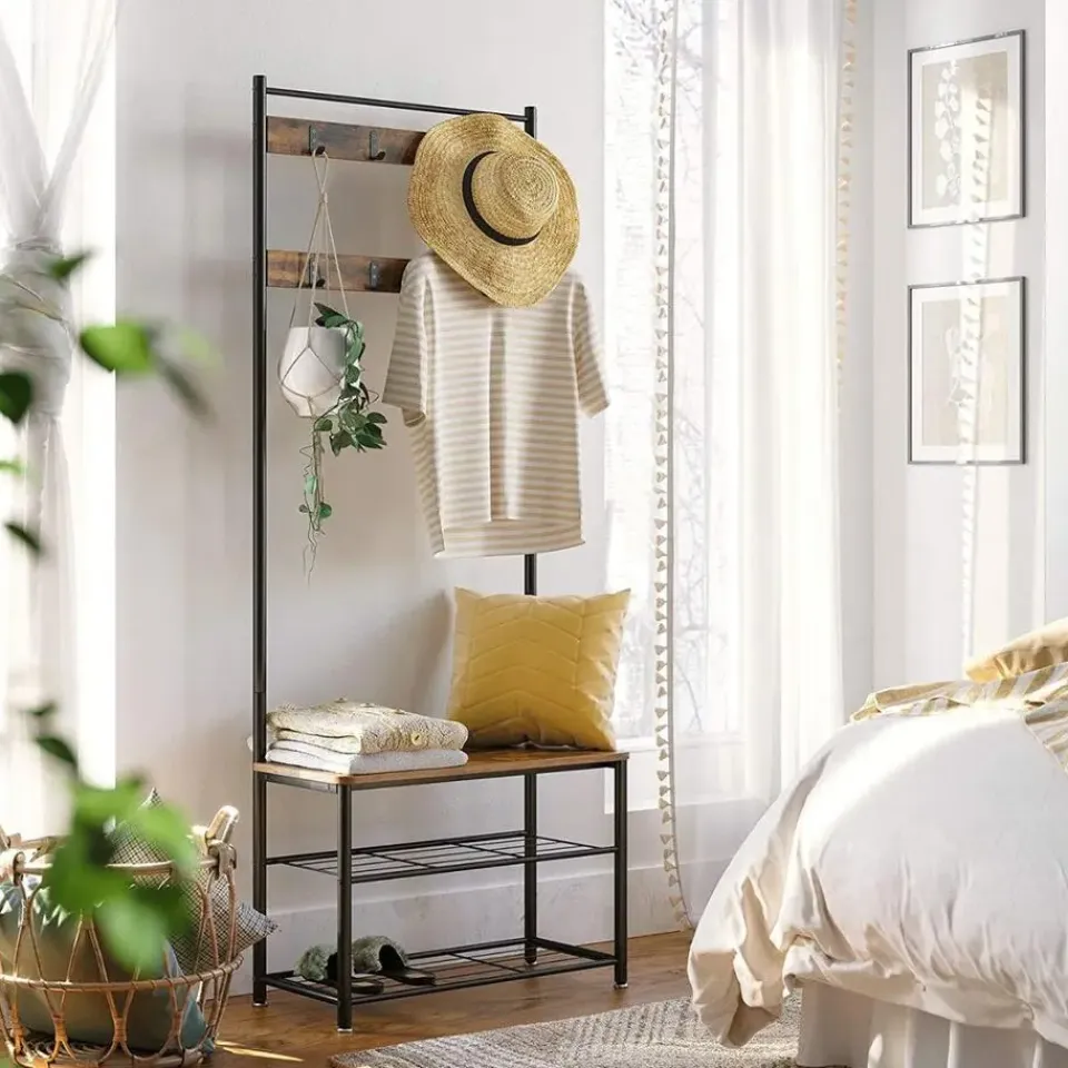 Productkenmerken: Multifunctioneel opbergmeubel voor industriële entree. Een schoenenbank en een schoenenrek. Perfect om kleding op te hangen, schoenen te organiseren en te zitten om uw schoenen aan of uit te trekken, deze veelzijdige gangopbergunit voldoet aan al uw behoeften. 8 haken om jassen, jacks, petten en sjaals op te hangen… Zitafmetingen: 70 x 30 cm (L x B). Statische draagcapaciteit van elke haak: 3 kg – max. Statische draagcapaciteit van de bank: 80 kg. Productafmetingen: Breedte 32,5 cm x Lengte 70 cm x Hoogte 175 cm – Nettogewicht: 8,7 kg. Verpakkingsafmetingen: Breedte 11 cm x Hoogte 46 cm x Diepte 78,5 cm – Brutogewicht: 8,7 kg.