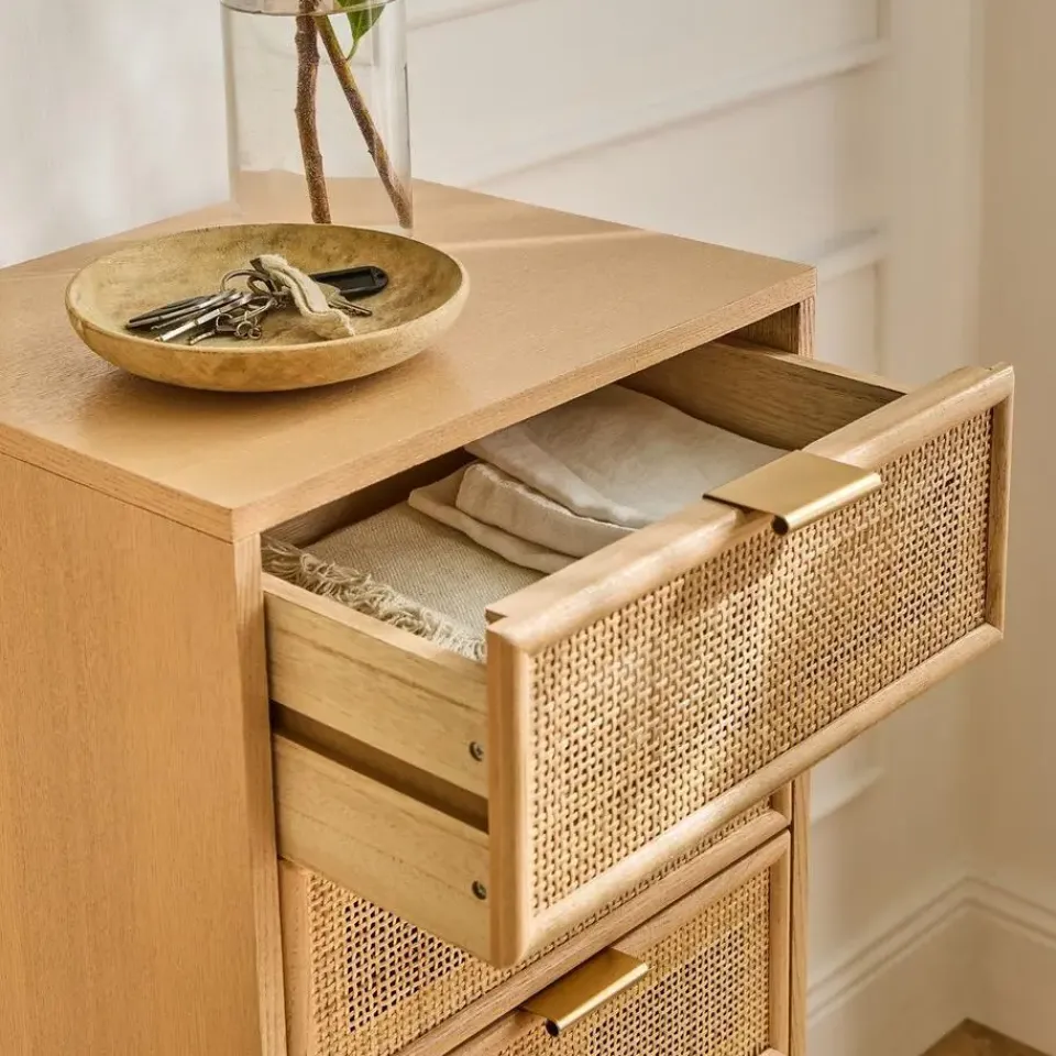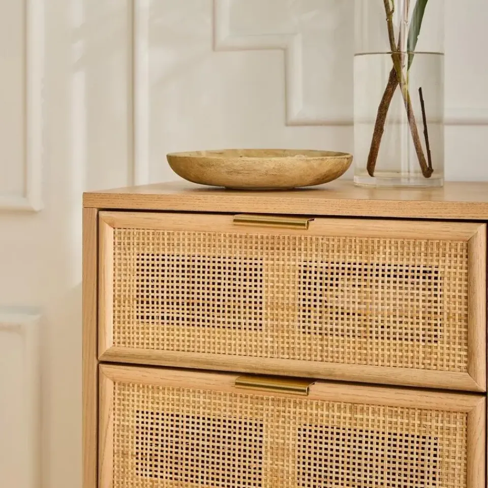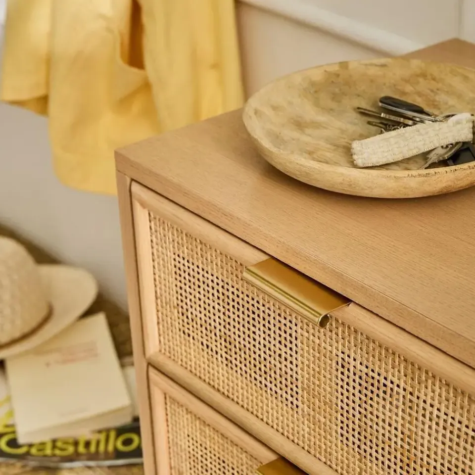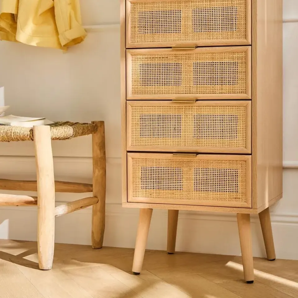 Ontdek onze ladekast met 5 lades met een natuurlijke uitstraling dankzij de natuurlijke rotan voorkant en massief grenen poten. Breng praktische en esthetische opslag in uw interieur. Dankzij de compacte afmetingen kan hij gemakkelijk in kleine ruimtes worden geplaatst om uw huis te optimaliseren!Producteigenschappen:Massief grenen poten, natuurlijke rotan lades voorkant, MDF.5 lades.Productafmetingen:Lengte 36,5 cm x Breedte 42 cm x Hoogte 100,5 cm – Nettogewicht: 20 kg.Afmetingen van het pakket:Pakket nr.1: Lengte 86 cm x Hoogte 20 cm x Diepte 41 cm – Brutogewicht: 21,5 kg.