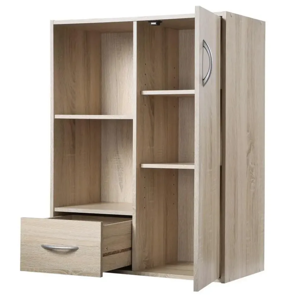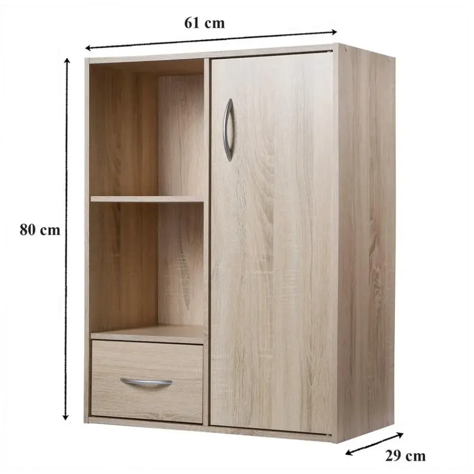 Meubelkast – 2 compartimenten + lade en kastU wilt ruimte besparen, kies dan voor Deze opbergplank met 2 compartimenten, 1 lade en 1 kast die past in uw entree, uw woonkamer of uw slaapkamer. U kunt er uw boeken, cd’s, dvd’s en documenten in opbergen en uw interieur inrichten met uw favoriete voorwerpen. U kunt uw meubelen gemakkelijk in elkaar zetten dankzij de bijgeleverde geïllustreerde montage-instructies en dankzij de goed geïdentificeerde montage-onderdelen. U heeft alleen een schroevendraaier nodig. Materiaal: spaanplaat Afmetingen: 61,5 x 29,5 x 80 cm Gewicht: 15840 g
