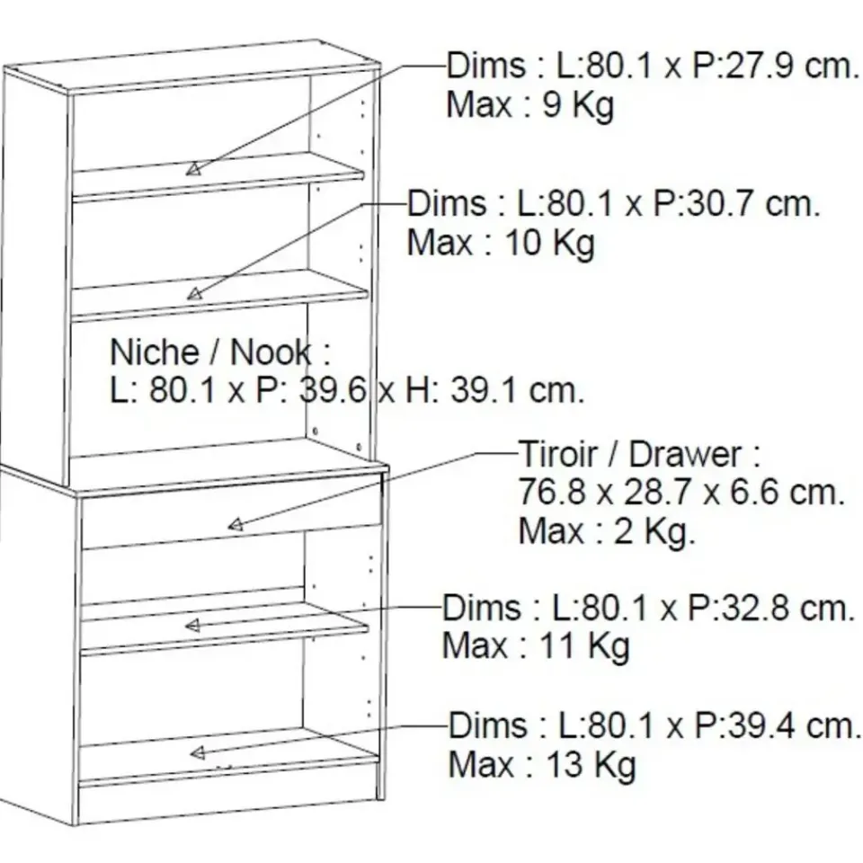 - 83cm x 40cm x 176cm (lengte x breedte/diepte x hoogte)