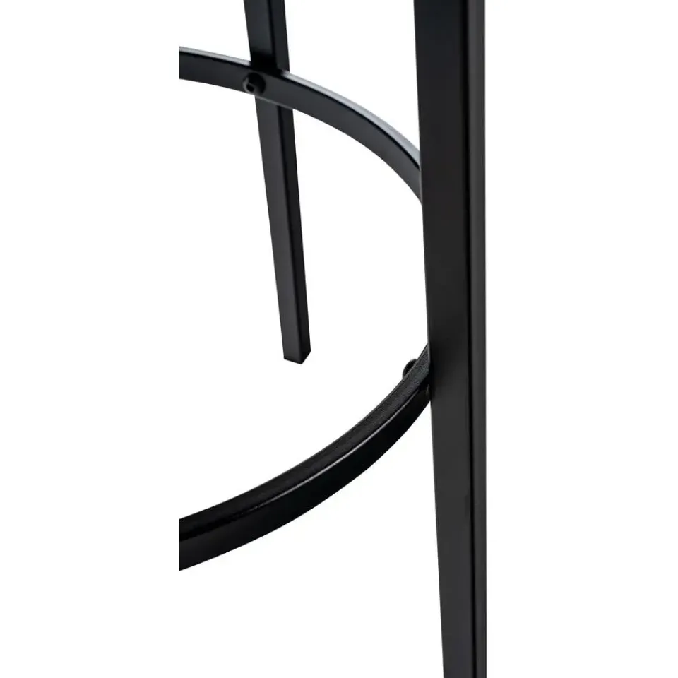 De barkruk staat op een vierpotig frame van matzwart metaal. Dit frame is stabiel en uiterst vloervriendelijk, zodat het gevoelige vloeren niet beschadigt. De dwarsbalken van het frame kunnen worden gebruikt als comfortabele voetensteun.
