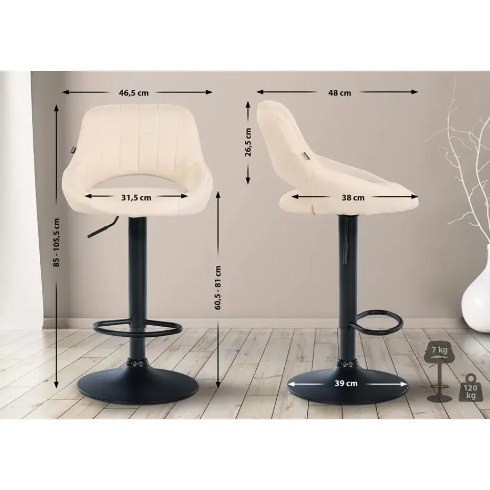 CLP Barkruk Milet zwart Frame – Stof – creme New