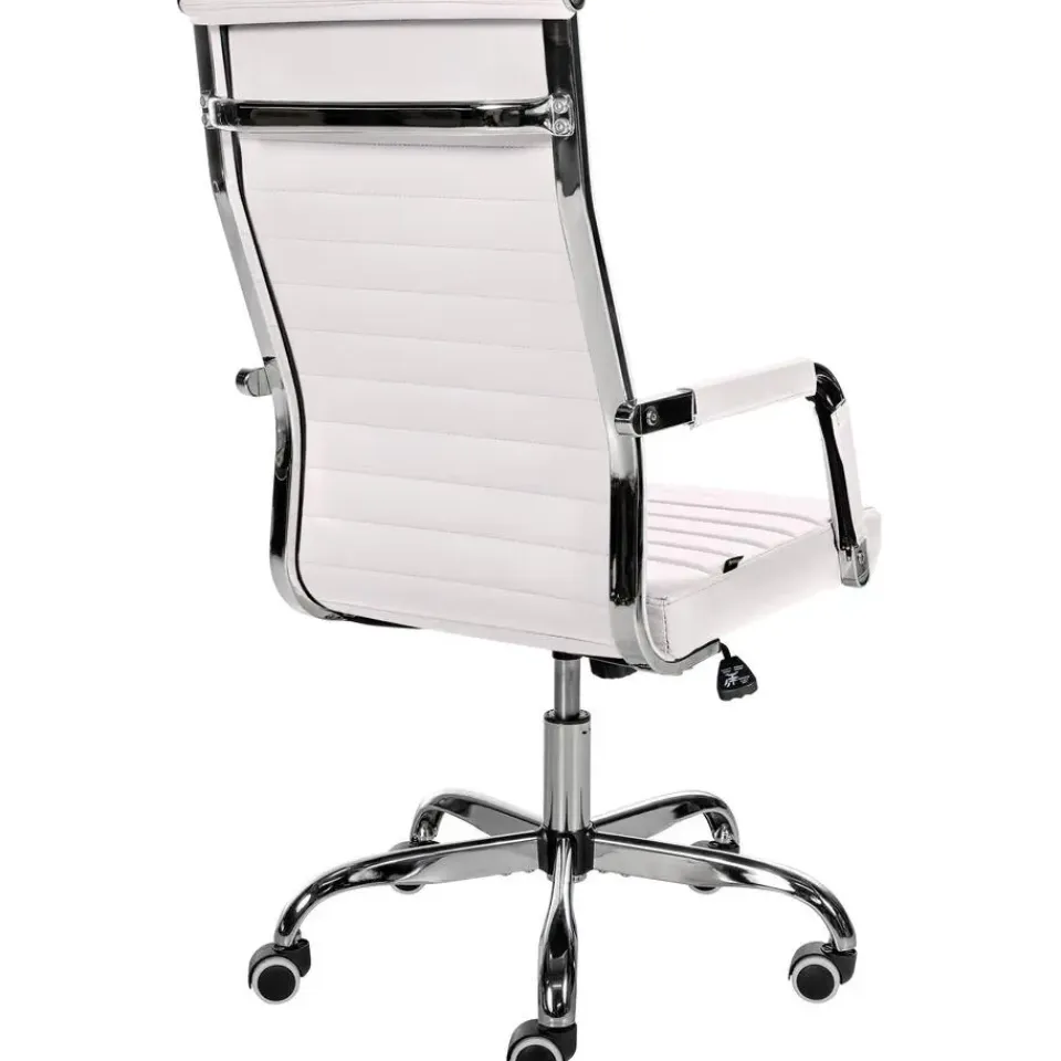 Deze bureaustoel Amadora overtuigt niet alleen met zijn moderne uitstraling, maar ook op het gebied van comfort. De hoogwaardige en onderhoudsvriendelijke kunstlederen bekleding zorgen voor een aangenaam zitervaring, zelfs gedurende meerdere uren. Bovendien is de zithoogte traploos instelbaar en garandeert ergonomisch zitten. Bovendien is de bureaustoel uitgerust met een kantelmechanisme dat meer bewegingsvrijheid biedt. De stabiliteit wordt gegarandeerd door het metalen frame in chroomlook. Met de vijf soepel lopende wielen kunt u zich gemakkelijk en losjes over de vloer verplaatsen. of het nu gaat om harde of zachte ondergrond.