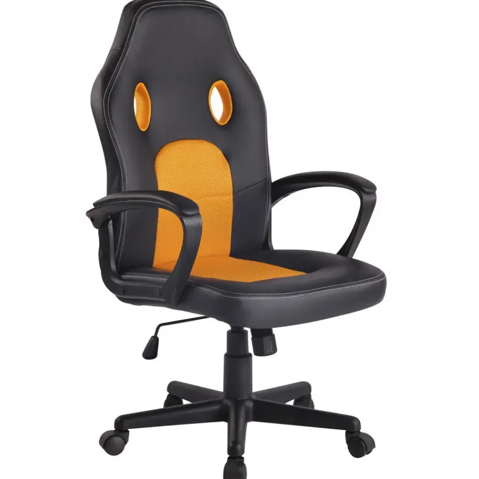 De bureaustoel Elbing combineert sportieve elegantie met zitcomfort. De aangenaam gestoffeerde zitting met onderhoudsvriendelijke gaas- en kunstlederen bekleding zorgt voor een aangenaam zitervaring. De gaasbekleding is ademend, wat vooral bij hoge temperaturen een voordeel kan zijn. De verstelbare zithoogte en het ingebouwde kantelmechanisme maken de bewegingsvrijheid perfect. De gamestoel staat stevig op vijf soepel lopende wielen en een kunststof frame. Of het nu gaat om harde vloeren of tapijten, u kunt zich altijd gemakkelijk en losjes over de vloer verplaatsen.