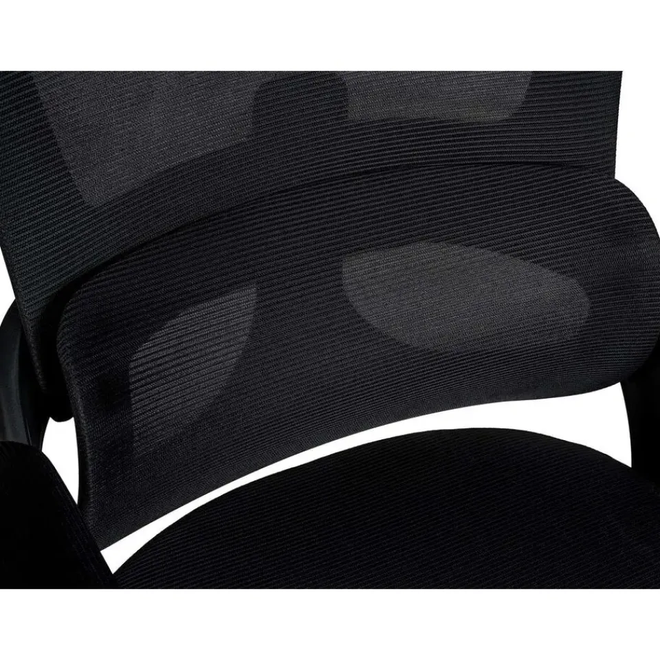 De lendensteun en de hoofdsteun (elk in hoogte verstelbaar) zijn bijzonder weldadig en ook de armleuningen zorgen voor ontspanning. De armleuningen kunnen naar voren, naar achteren en opzij worden gedraaid. Bovendien kunnen de armleuningen worden opgeklapt zodat de stoel naar de rand van het bureau kan worden verplaatst. Natuurlijk is de bureaustoel in hoogte verstelbaar. En de stoel heeft een kantelfunctie waarbij de uitgangspositie ook vastgezet kan worden.