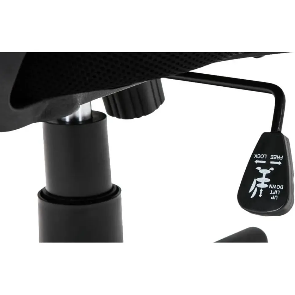 Het onderstel is heel stabiel. De stoel staat stevig op 5 lichtrollende zwenkwielen. De zithoogte is traploos verstelbaar.