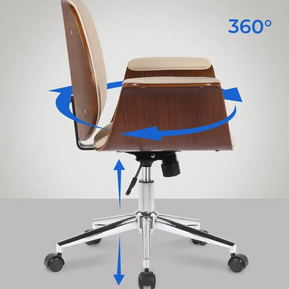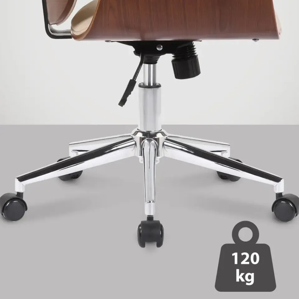 De Kemberg bureaustoel overtuigt niet alleen door zijn moderne uiterlijk, maar ook op het gebied van comfort kan niemand hem voor de gek houden. De bureaustoel is bekleed met kunstleer en is daardoor bijzonder gemakkelijk schoon te maken. Bovendien is de zithoogte traploos instelbaar en garandeert ergonomisch zitten. Bovendien is de bureaustoel uitgerust met een kantelmechanisme, dat voor meer bewegingsvrijheid zorgt. De stabiliteit wordt verzekerd door het metalen frame in chroomlook. Het elegante chromen frame en de stabiele gebogen armleuningen geven het geheel iets extra’s en ronden het ontwerp af.
