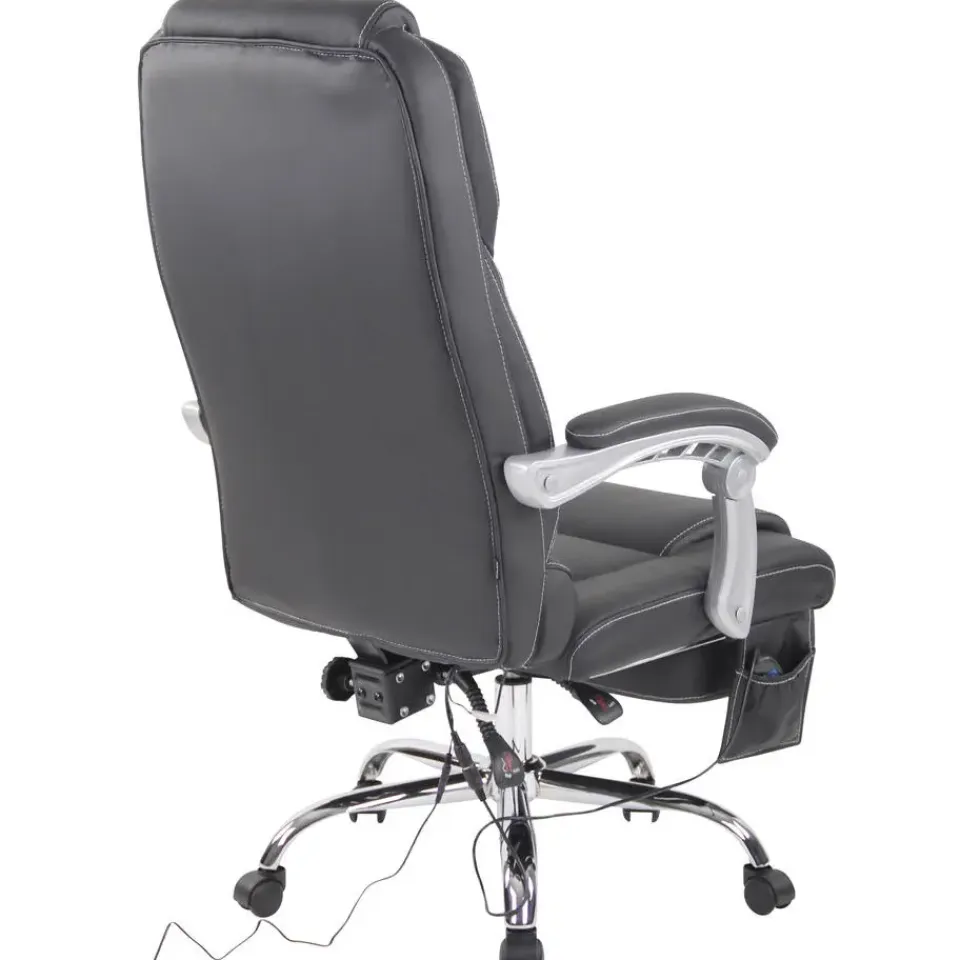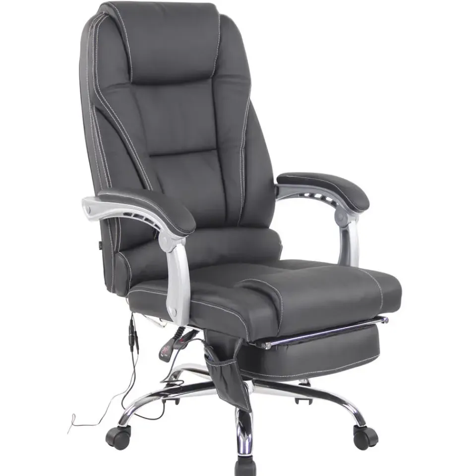 De voetensteun en de kantelbare rugleuning van de ergonomische stoel zorgen bovendien voor een uitzonderlijk zitcomfort – leun achterover en geniet! De bureaustoel is traploos in hoogte verstelbaar en 360 graden draaibaar. Hij staat stevig op het metalen frame en vijf lichtlopende wielen, waardoor de stoel ook op harde vloeren en tapijten mobiel blijft. De massagestoel heeft een draagvermogen van maximaal 136 kg.