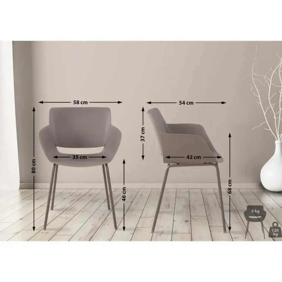 Het frame van de stoel is gemaakt van gepoedercoat staal, zodat het corrosiebestendig is en niet roest. De kleuren van de zitschaal en het frame van de stoel zijn op elkaar afgestemd.