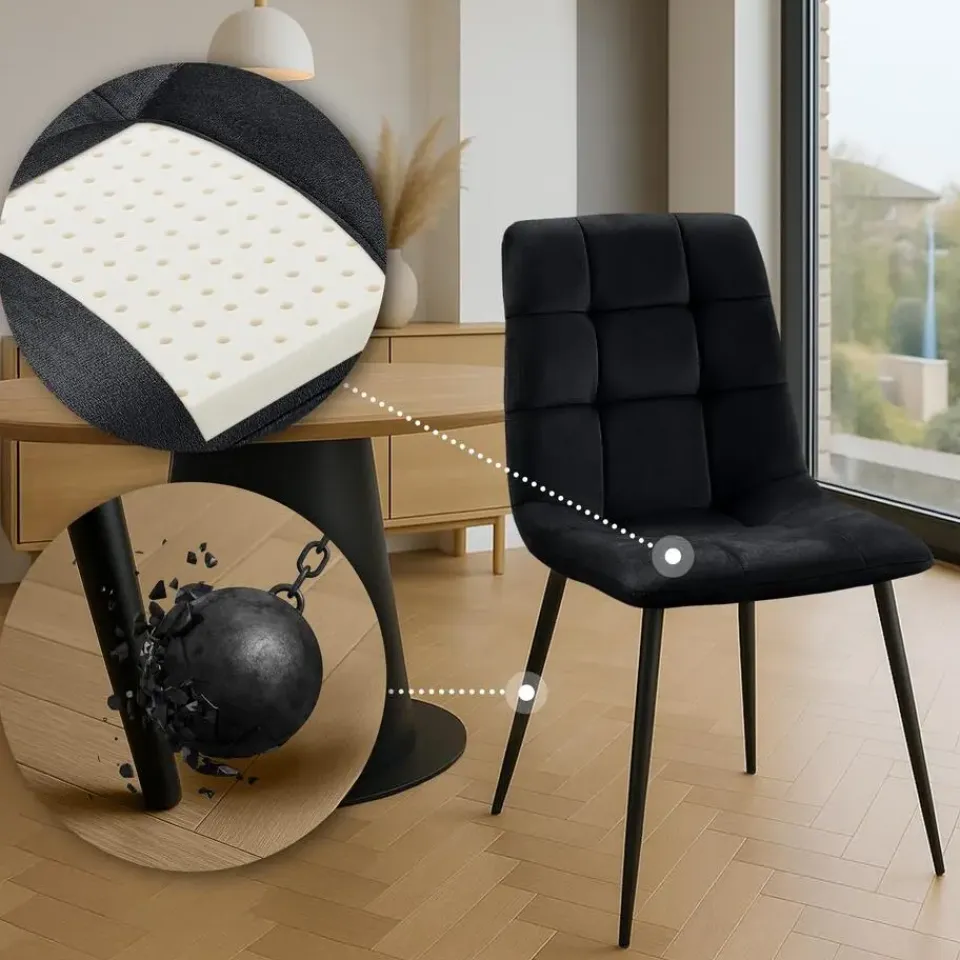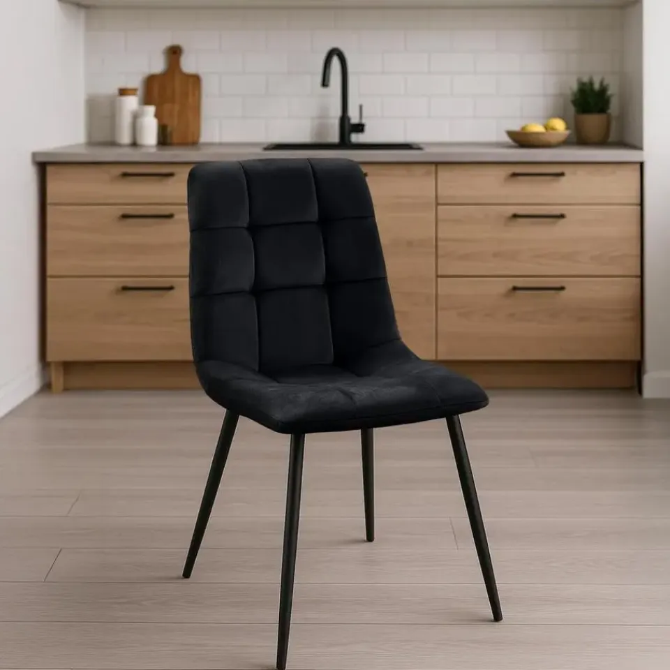De gestoffeerde eetkamerstoel Antibes is de perfecte aanvulling op huiselijke moderne kamers en zal in elke kamer een blikvanger zijn. Dankzij de hoge rugleuning en de aangename en comfortabele bekleding kunt u ook gedurende langere tijd comfortabel zitten. Dankzij onderhoudsvriendelijke materialen is de eetkamerstoel altijd snel en eenvoudig te reinigen. Op het moderne frame van metaal staat deze stoel goed bij elke gelegenheid, en er zijn ook vloerbeschermers onder de poten om te voorkomen dat de vloer wordt bekrast.